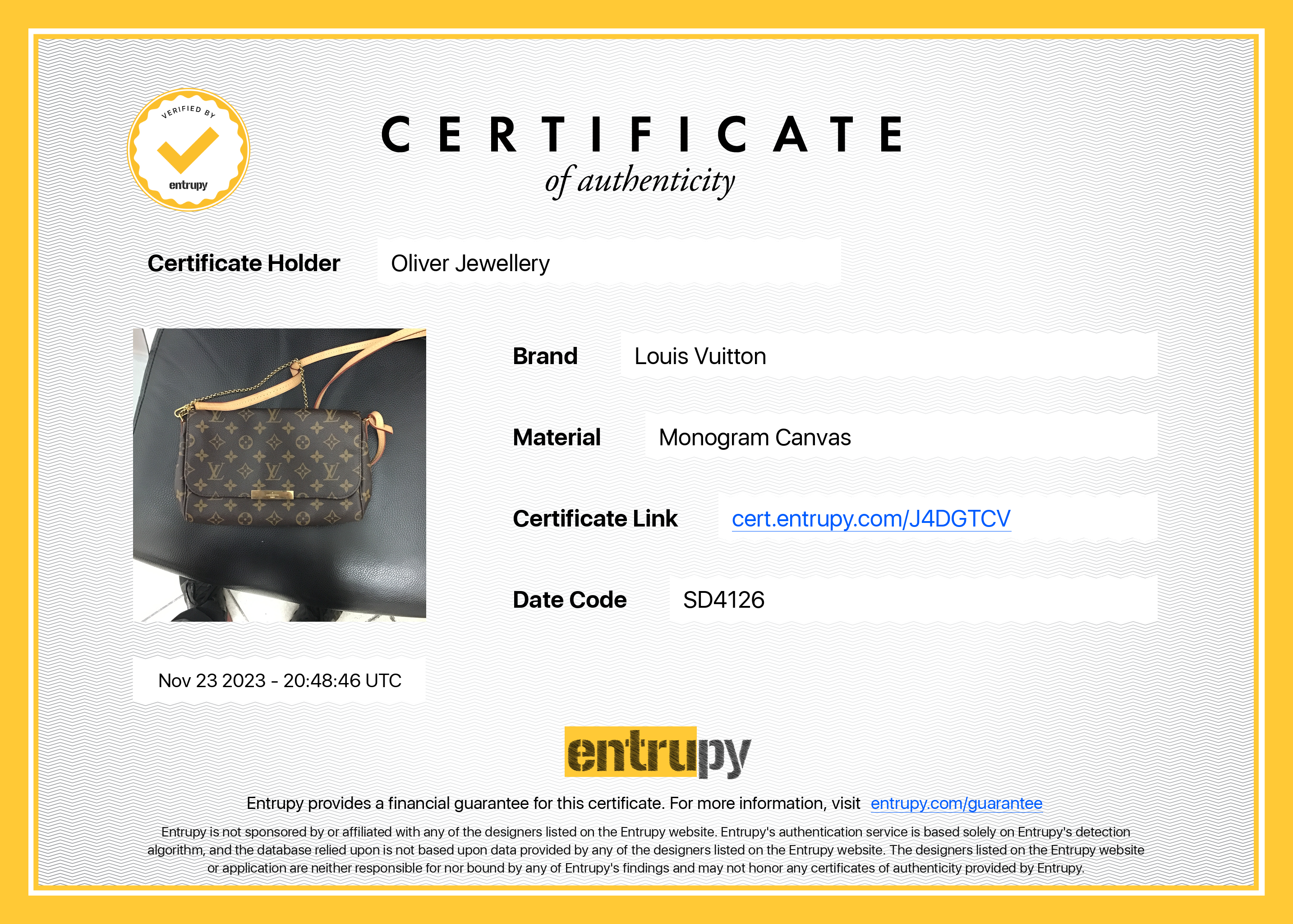 Dust Bag, Leather Shoulder Strap, Chain Link Strap, Entrupy Certificate of Authenticity