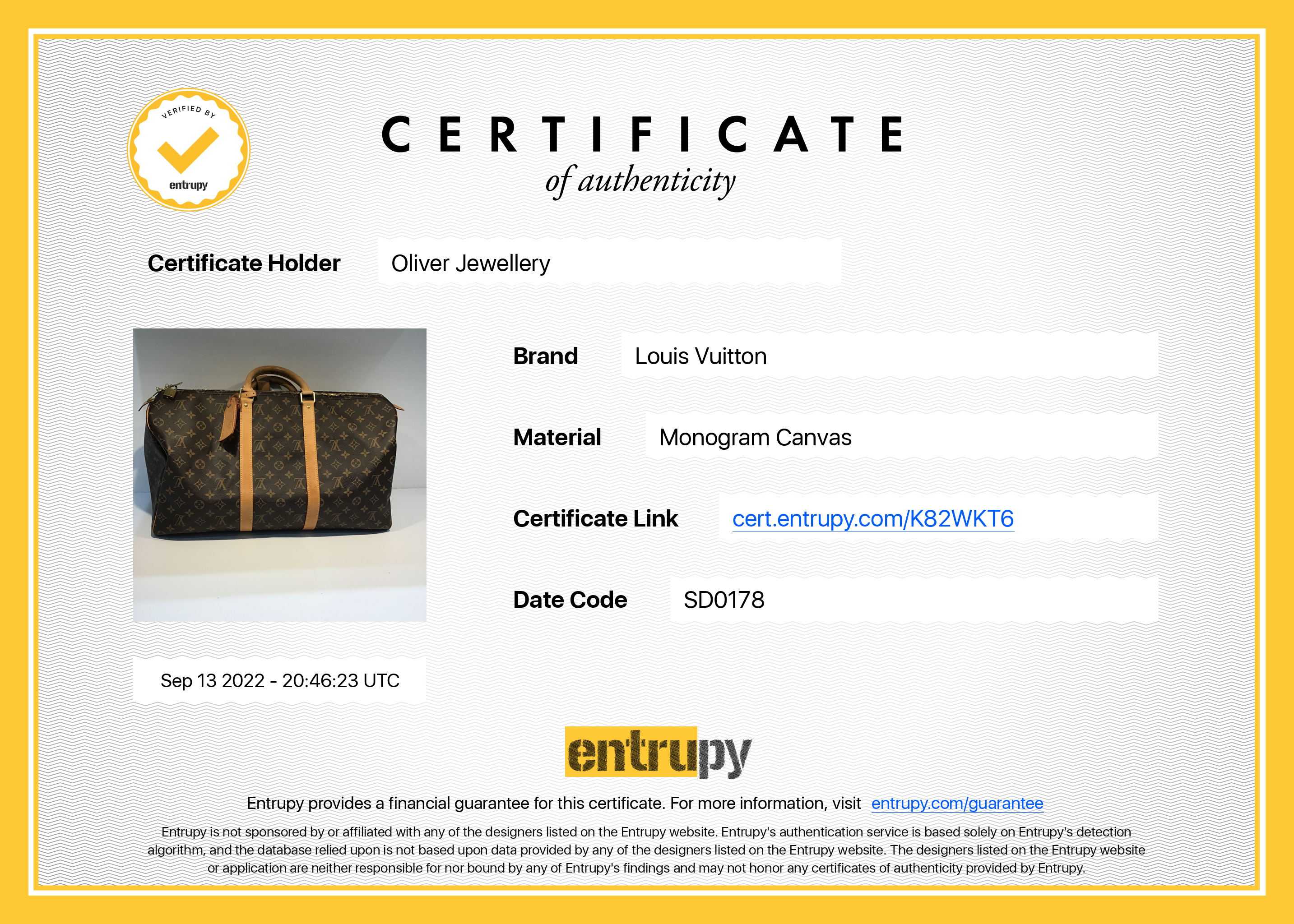 Included Items: Original Louis Vuitton Dust Bag, Receipt, Luggage Tag and Entrupy Certificate of Authenticity #: K82WKT6