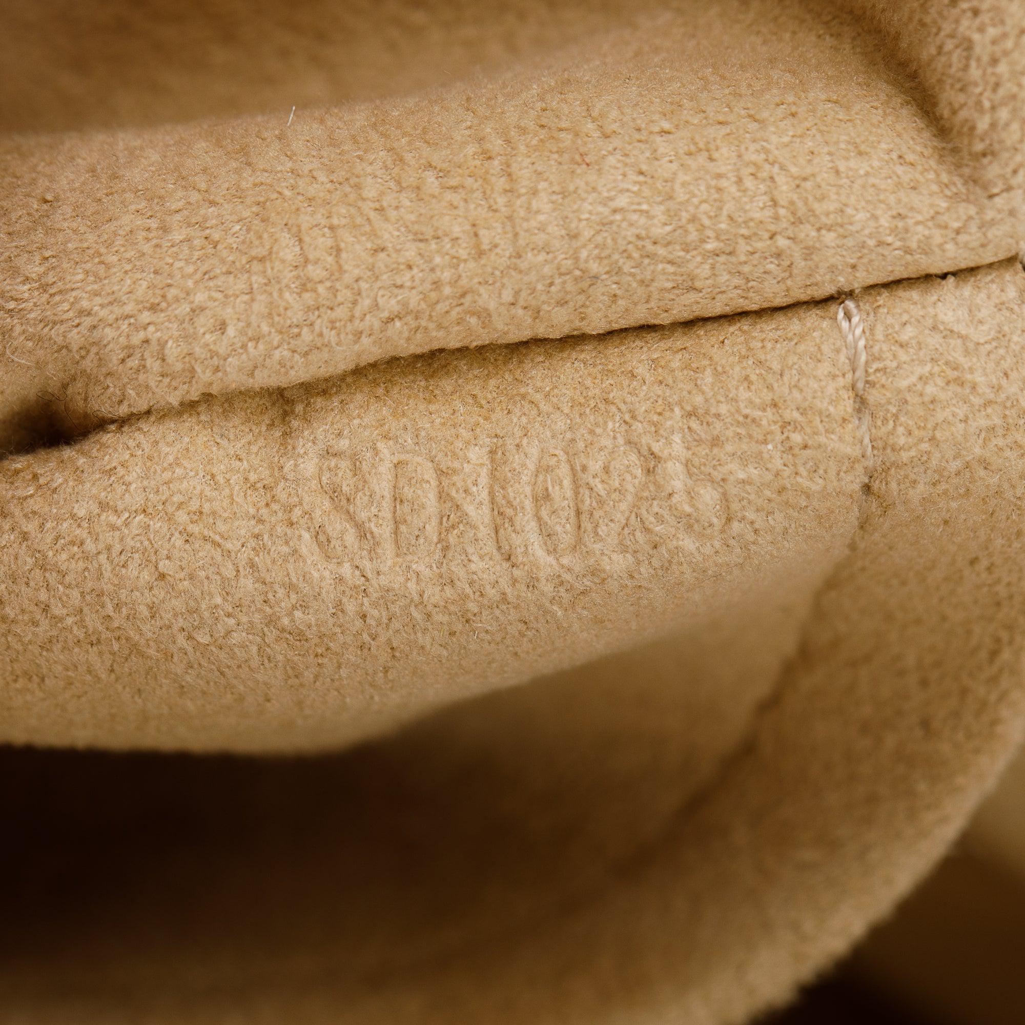 Condition: Very Good; slight surface scratches and tarnishing at hardware; slight scratches and marks at exterior leather trim and handles; minor mark at interior