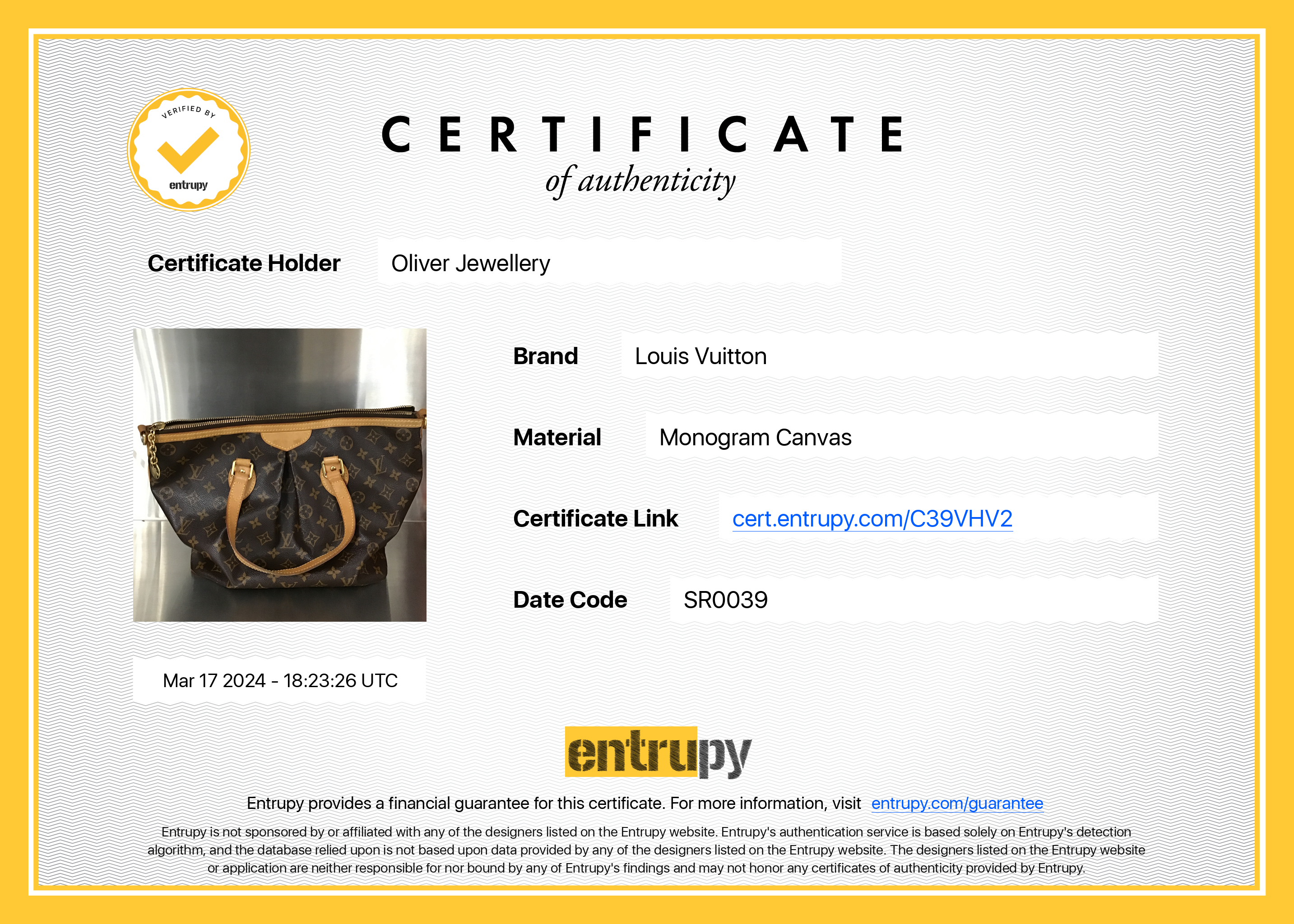 Dust Bag, Detachable Strap, Entrupy Certificate of Authenticity