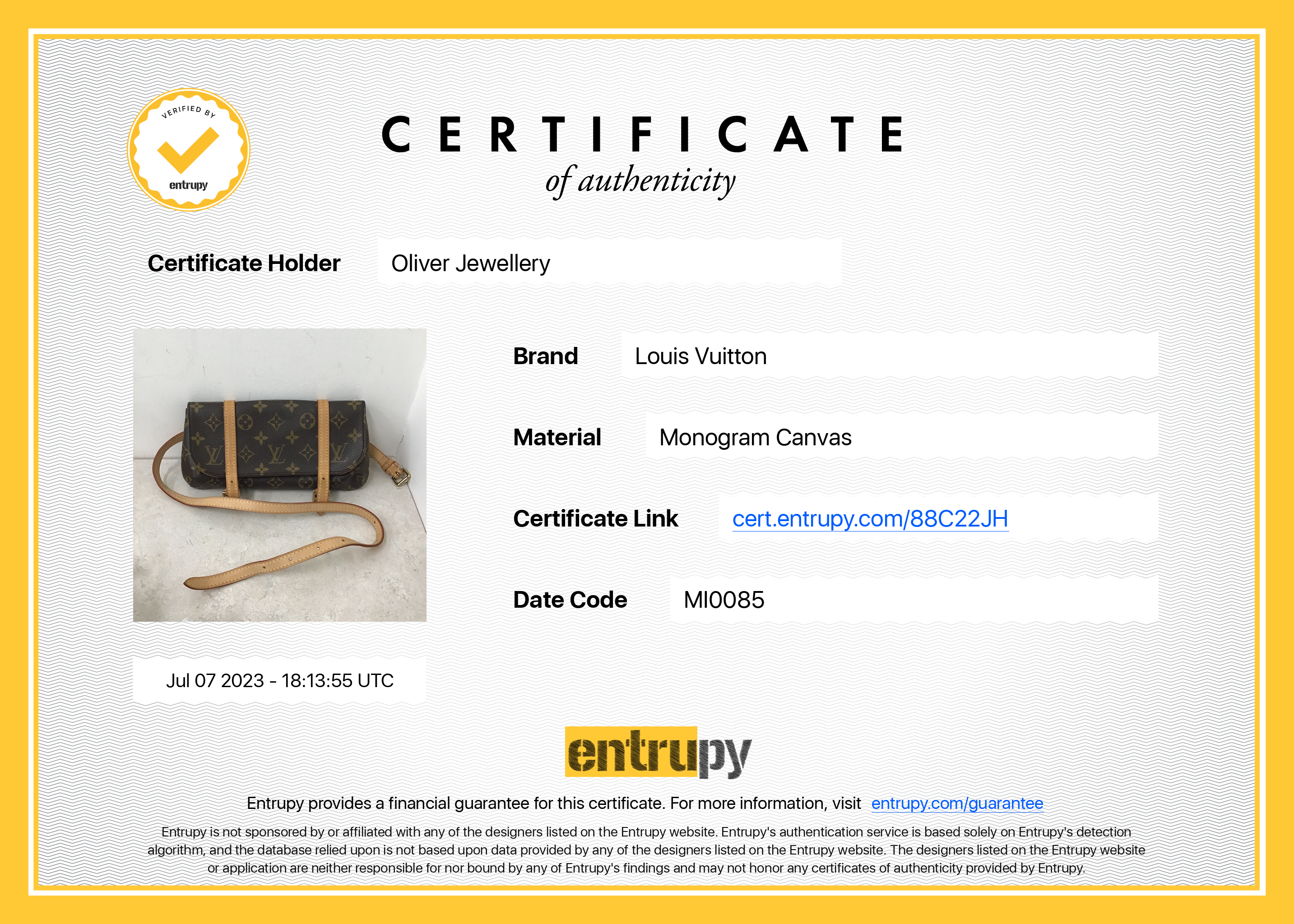 Included Item: Original Louis Vuitton Dust Bag and Entrupy Certificate of Authenticity #: 88C22JH