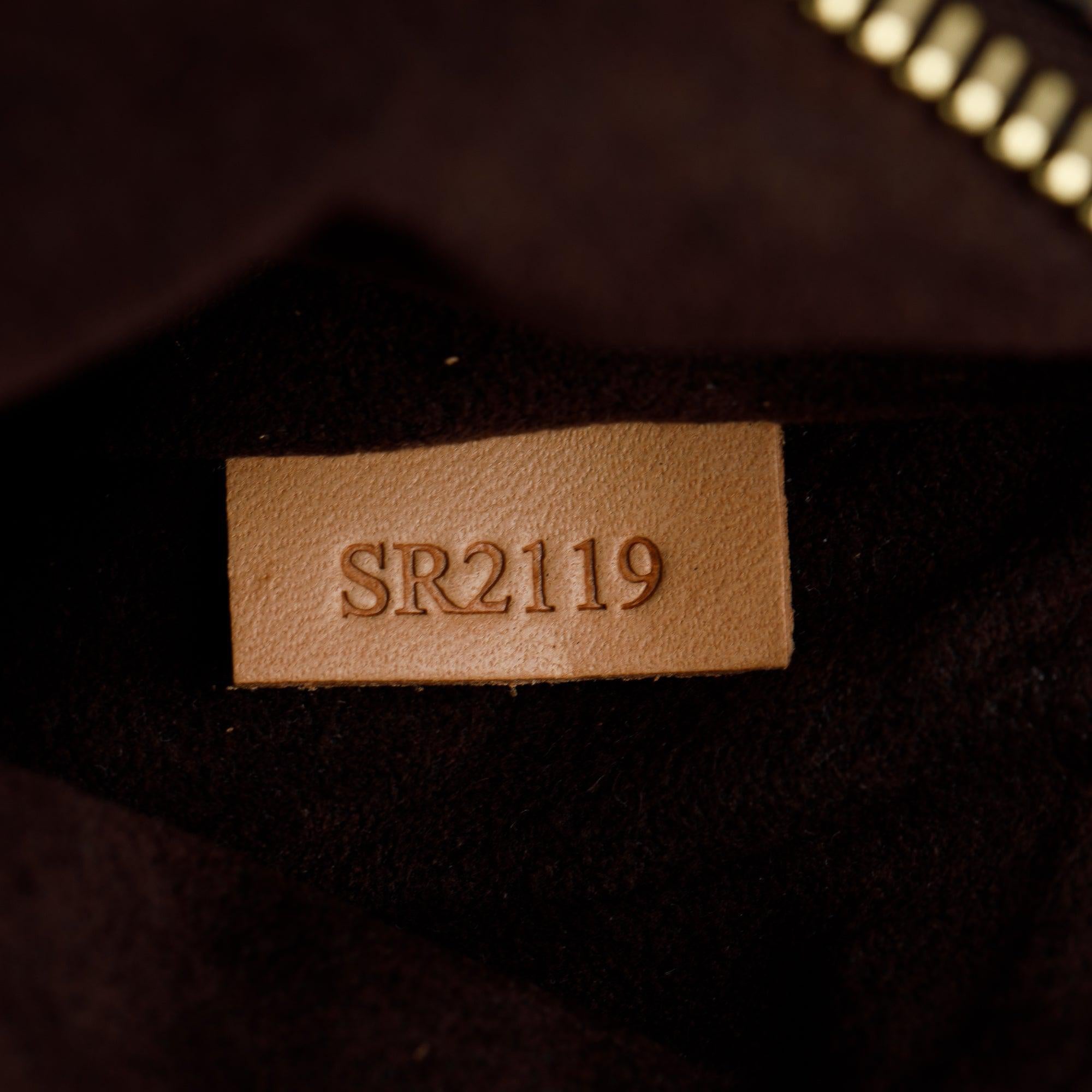 Condition: Very Good; light surface scratches at hardware; minor discoloration at exterior vachetta leather trim and top handle; slight creasing throughout; clean interior