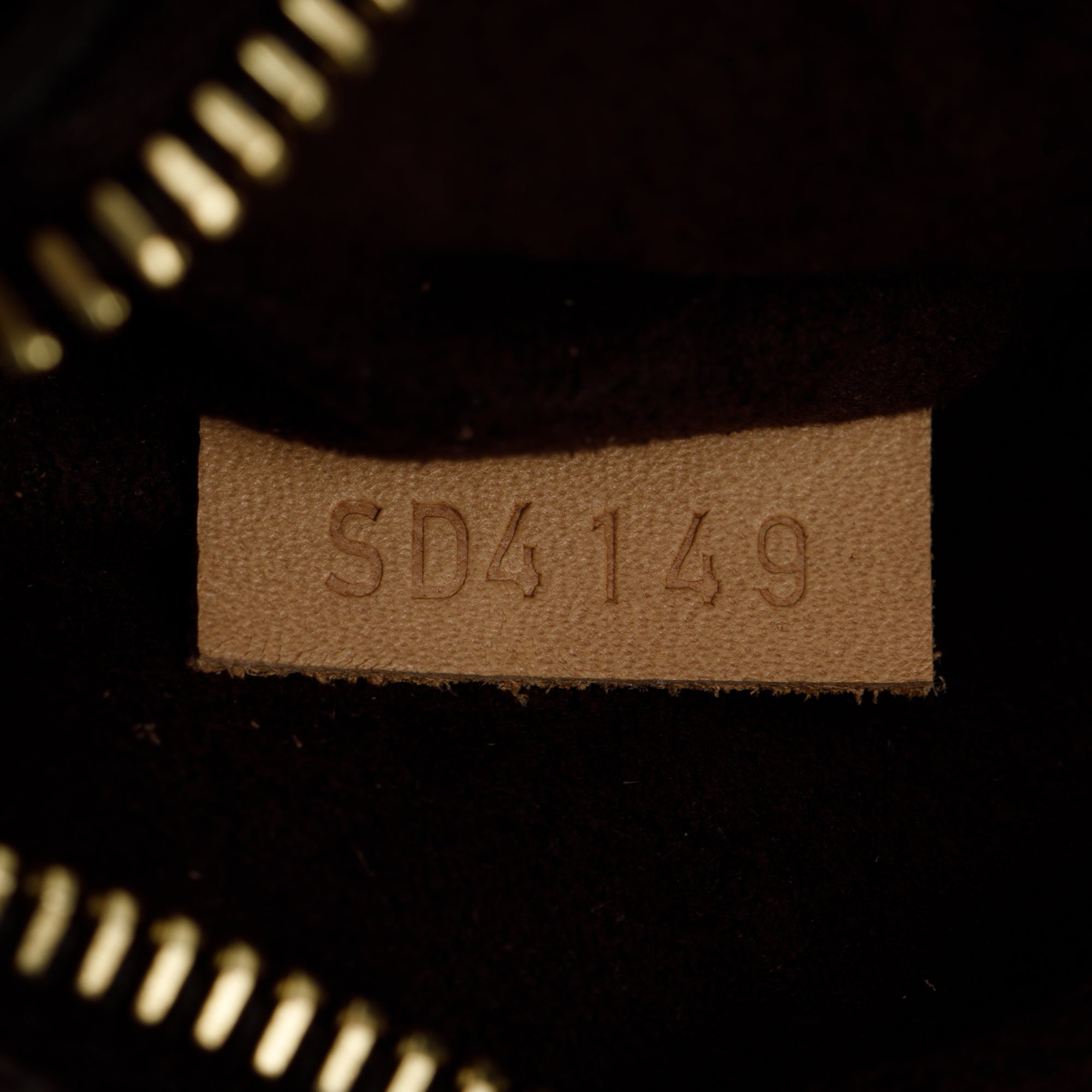Condition: Very Good; minor surface scratches at hardware; slight marks at exterior vachetta leather trim and top handle; clean interior