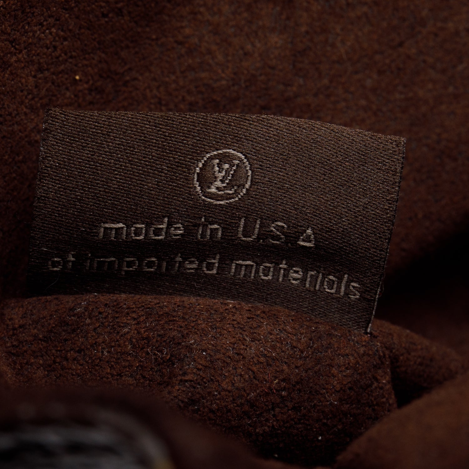 Condition: Very Good; slight scratches and tarnishing at hardware; slight marks at exterior vachetta leather trim and handle; clean interior