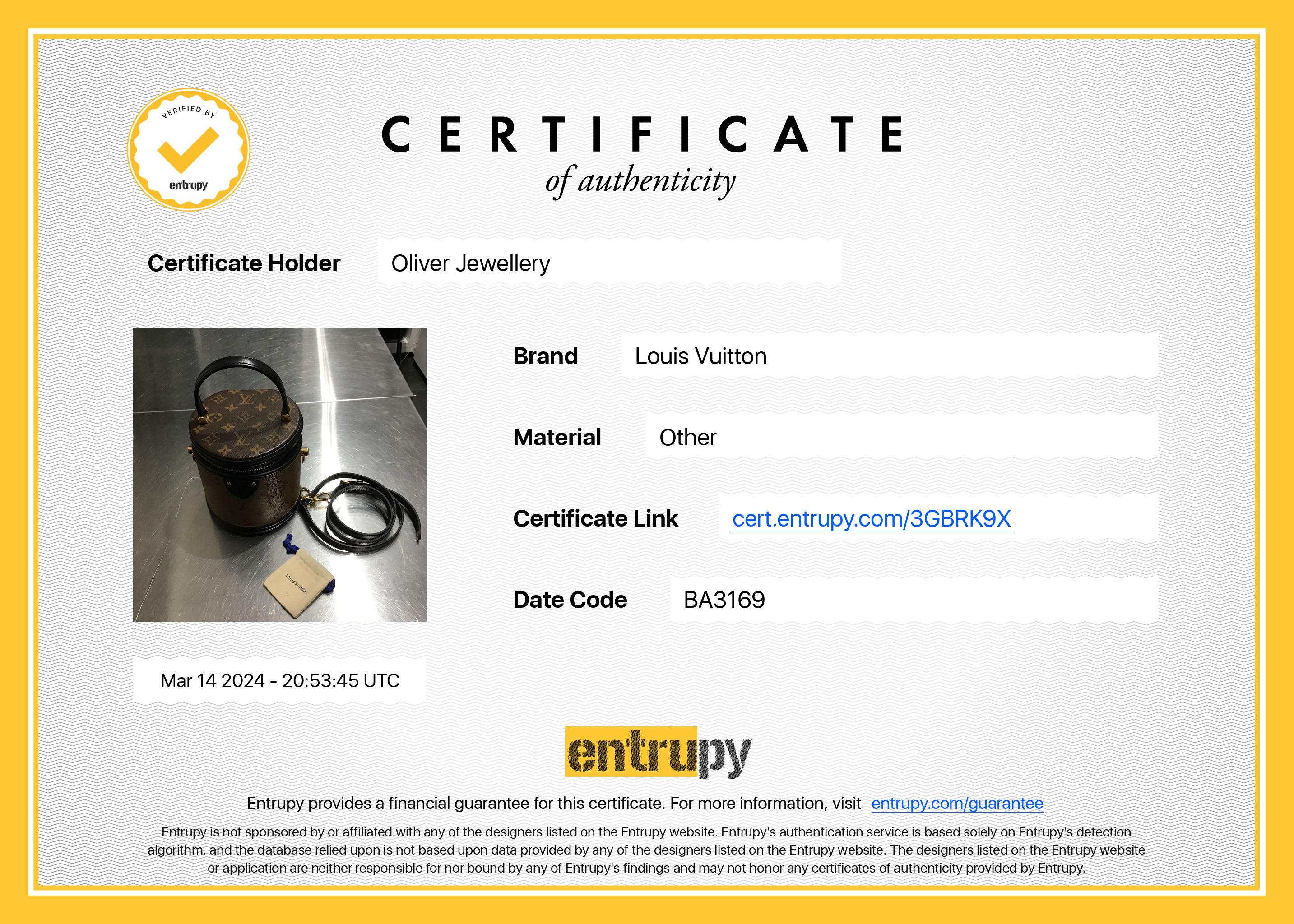 Detachable Strap, Lock & Key, Entrupy Certificate of Authenticity