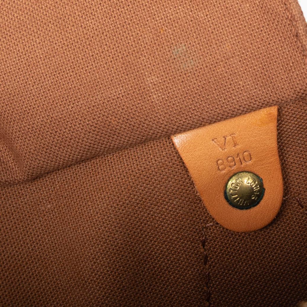 Condition: Good; slight scratches and tarnishing at hardware; some marks and scratches at vachetta leather trim and handles; clean interior