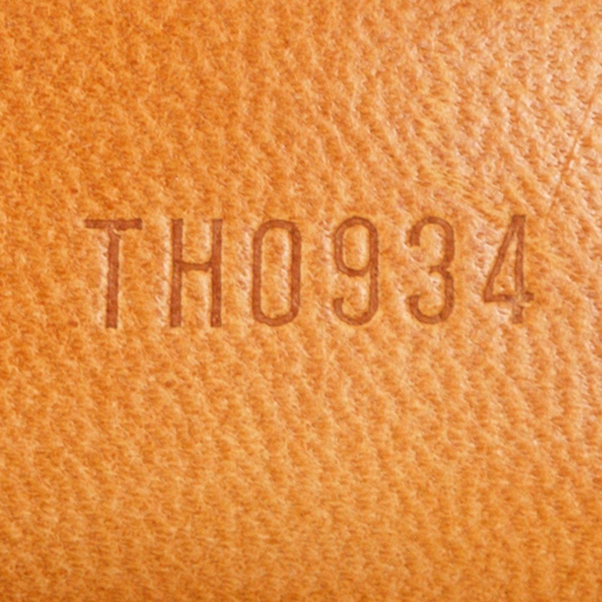 Condition: Fair; moderate surface scratches and tarnishing at hardware; moderate marks and discolouration at exterior leather trim and handles; zipper tab broken; clean interior