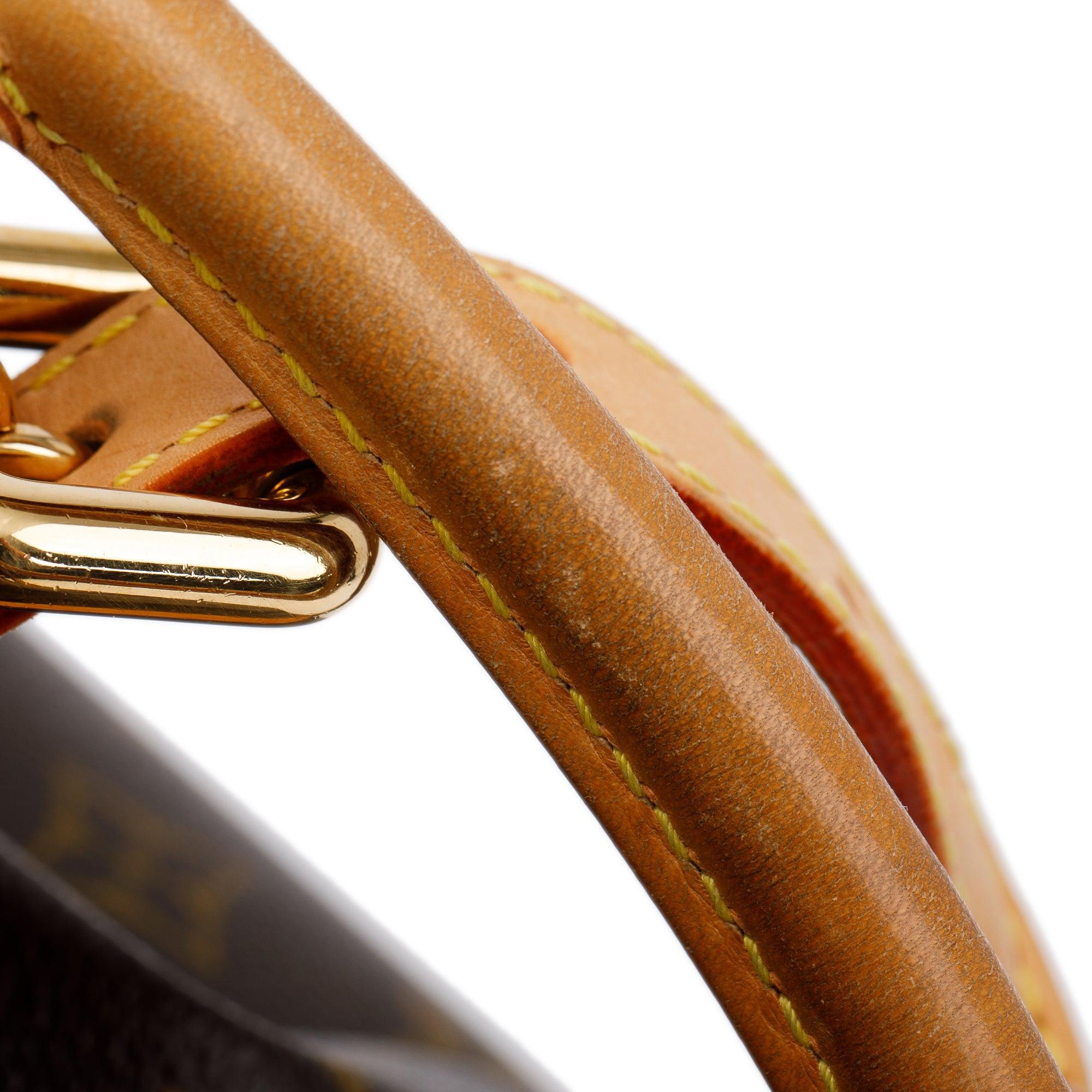 Condition: Good; slight surface scratches at hardware; some scuffs, water marks, and discolouration at exterior leather trim and shoulder straps; clean interior