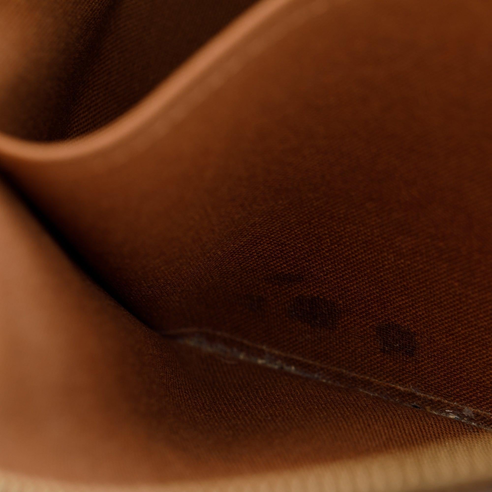 Condition: Very Good; light scratches and tarnishing at hardware; slight discolouration and mark at exterior vachetta leather trim and shoulder straps; slight staining at interior pocket