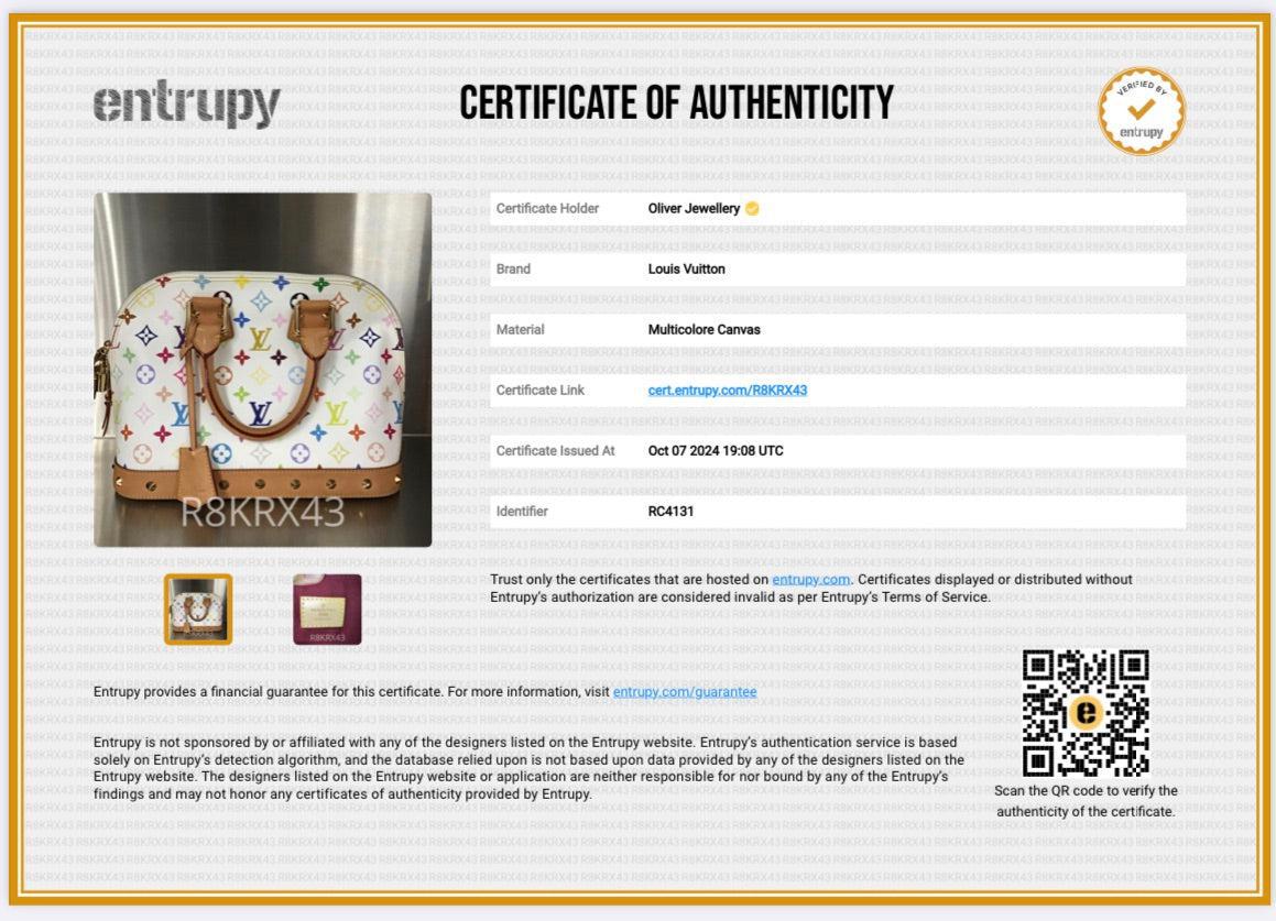 Lock & Keys with Clochette, Entrupy Certificate of Authenticity