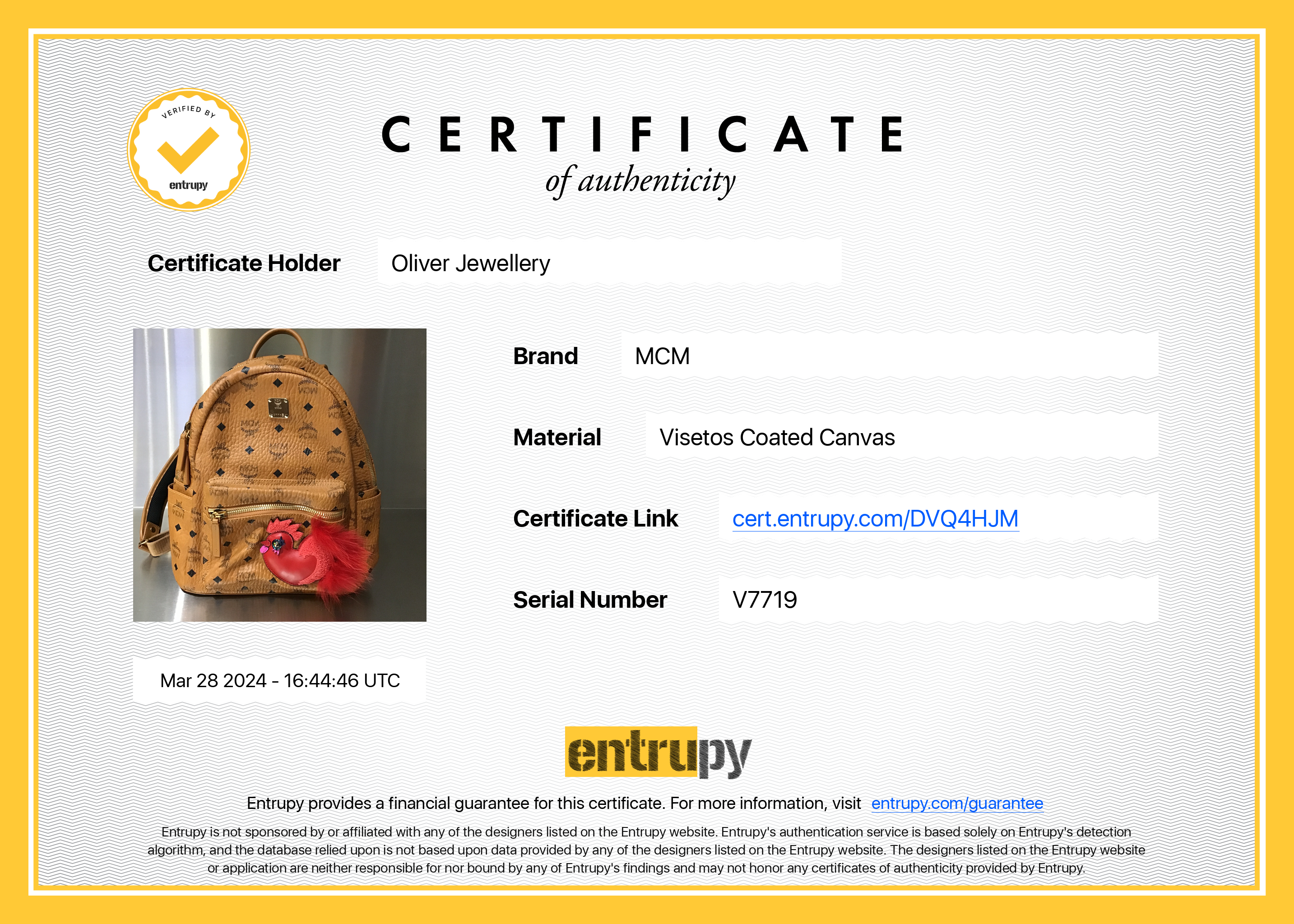 Dust Bag, Entrupy Certificate of Authenticity