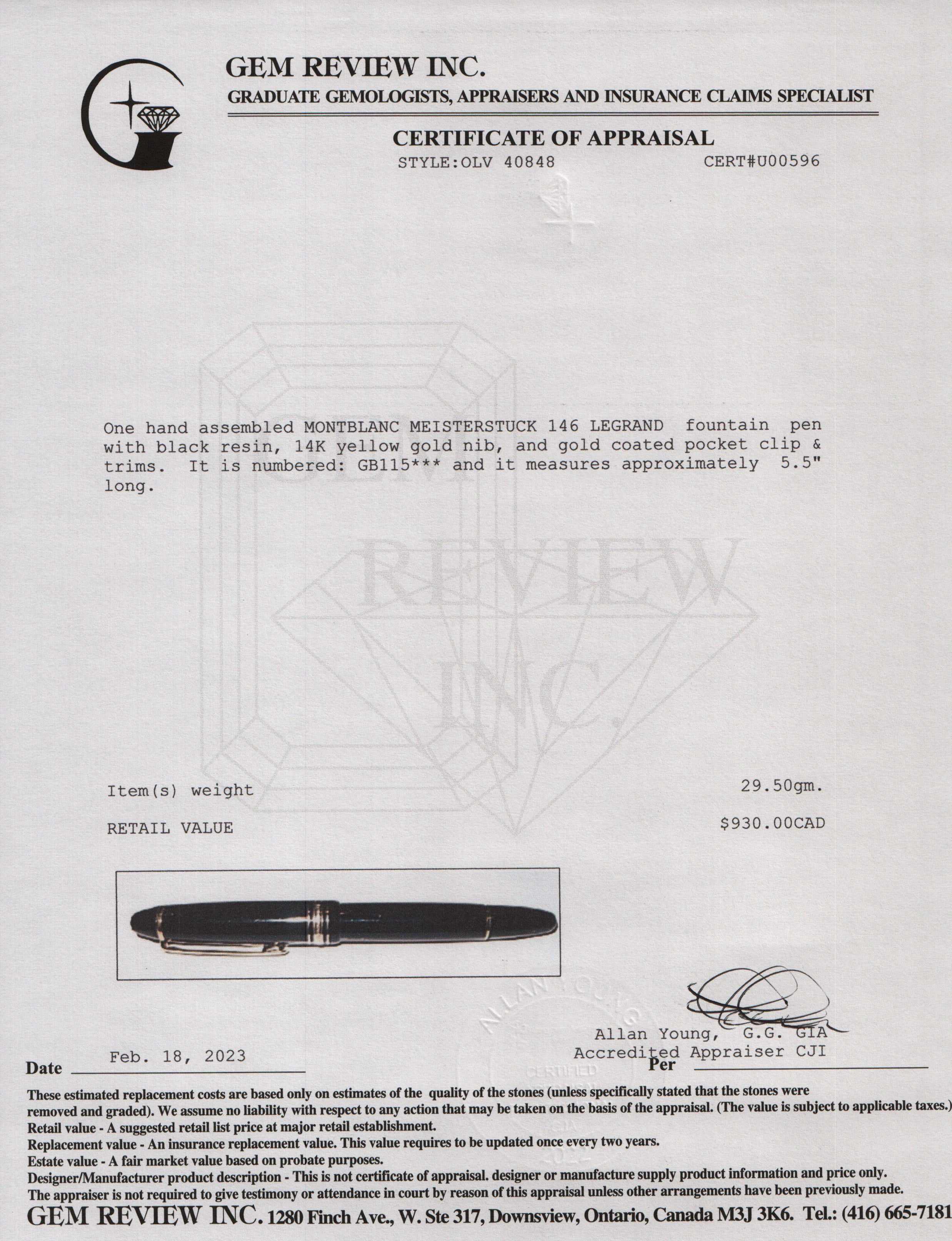 Gold-Coated Meisterstuck LeGrand 146 Fountain Pen w/ Box