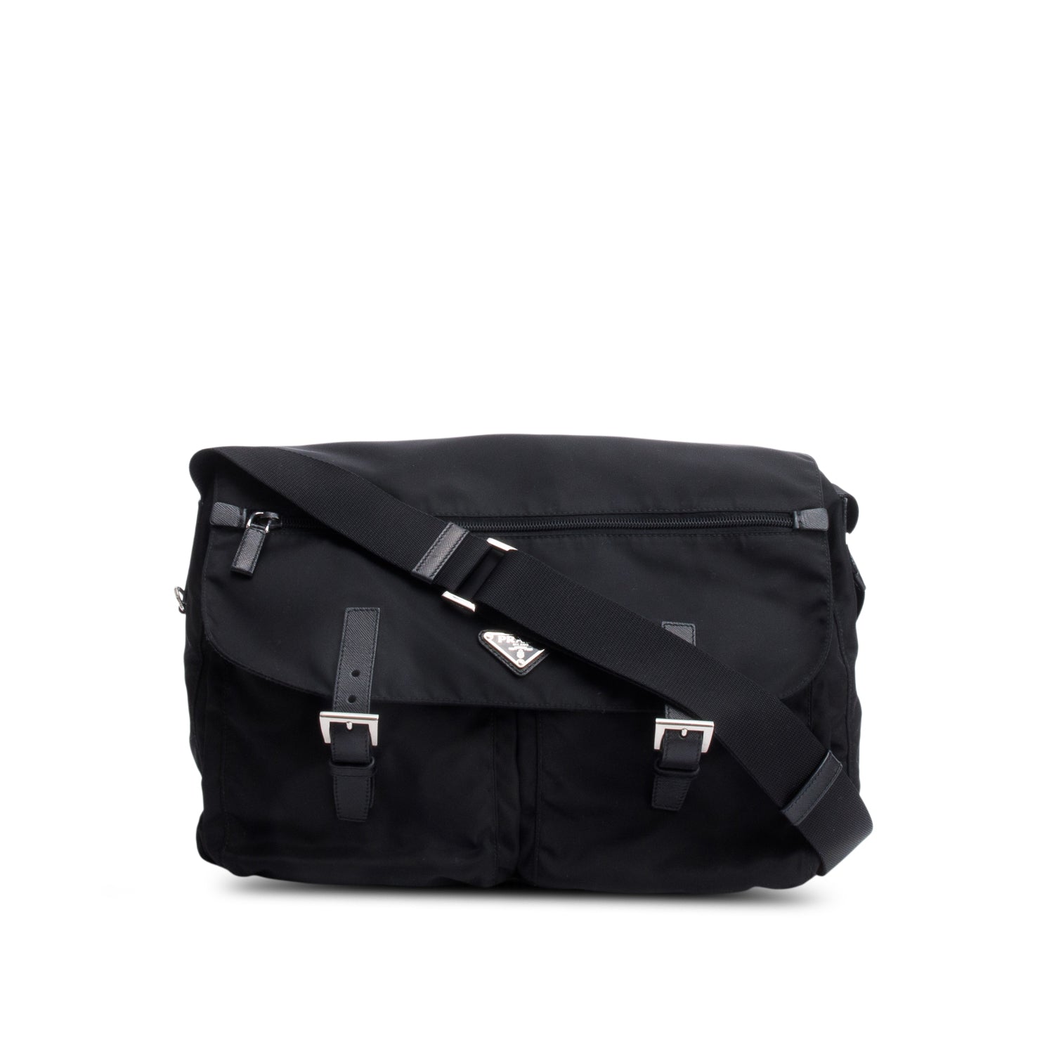 Black Nylon Vela Sport Buckle Messenger Bag w/ Authenticity Card