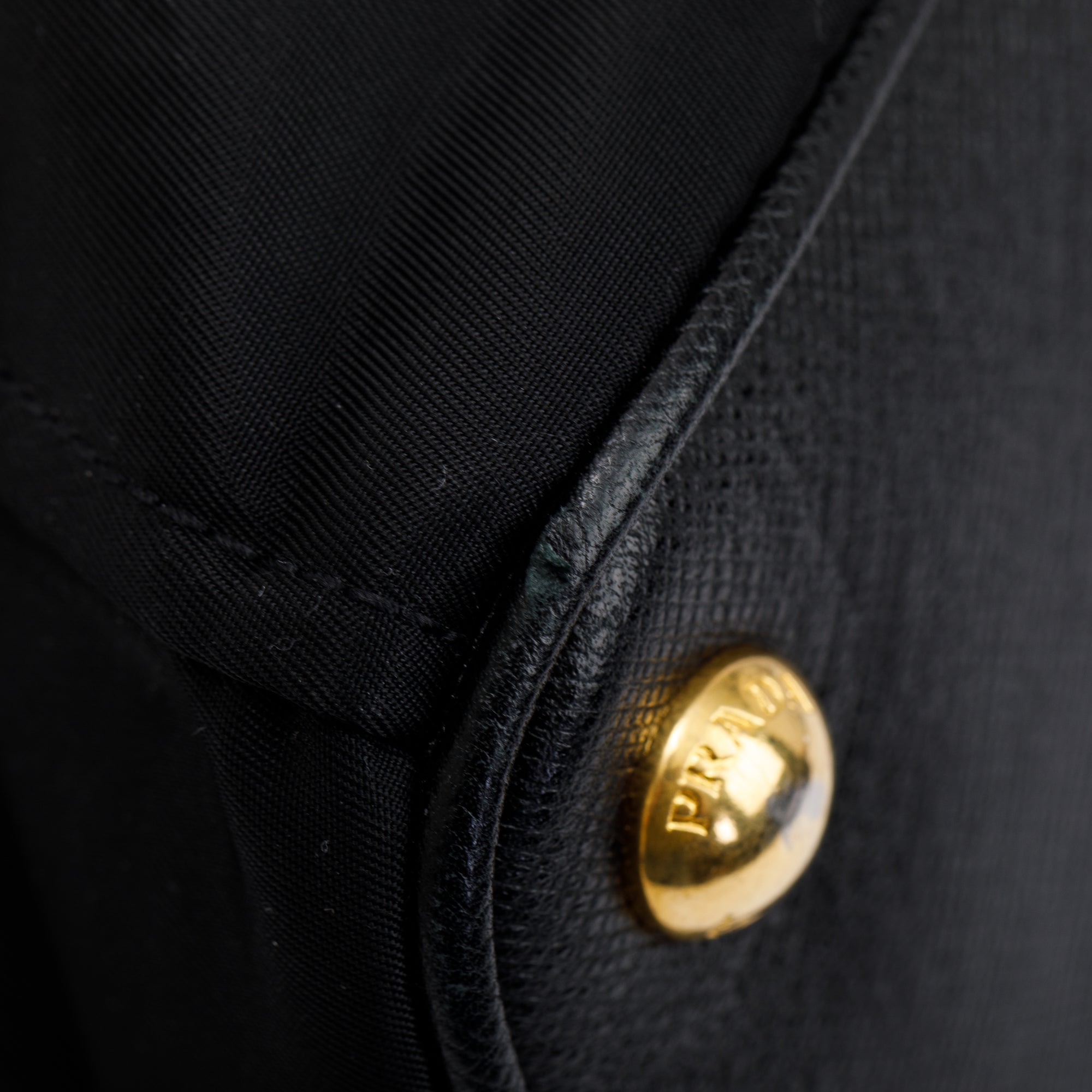 Black Saffiano-Trimmed Tessuto Nylon Tote w/ Strap