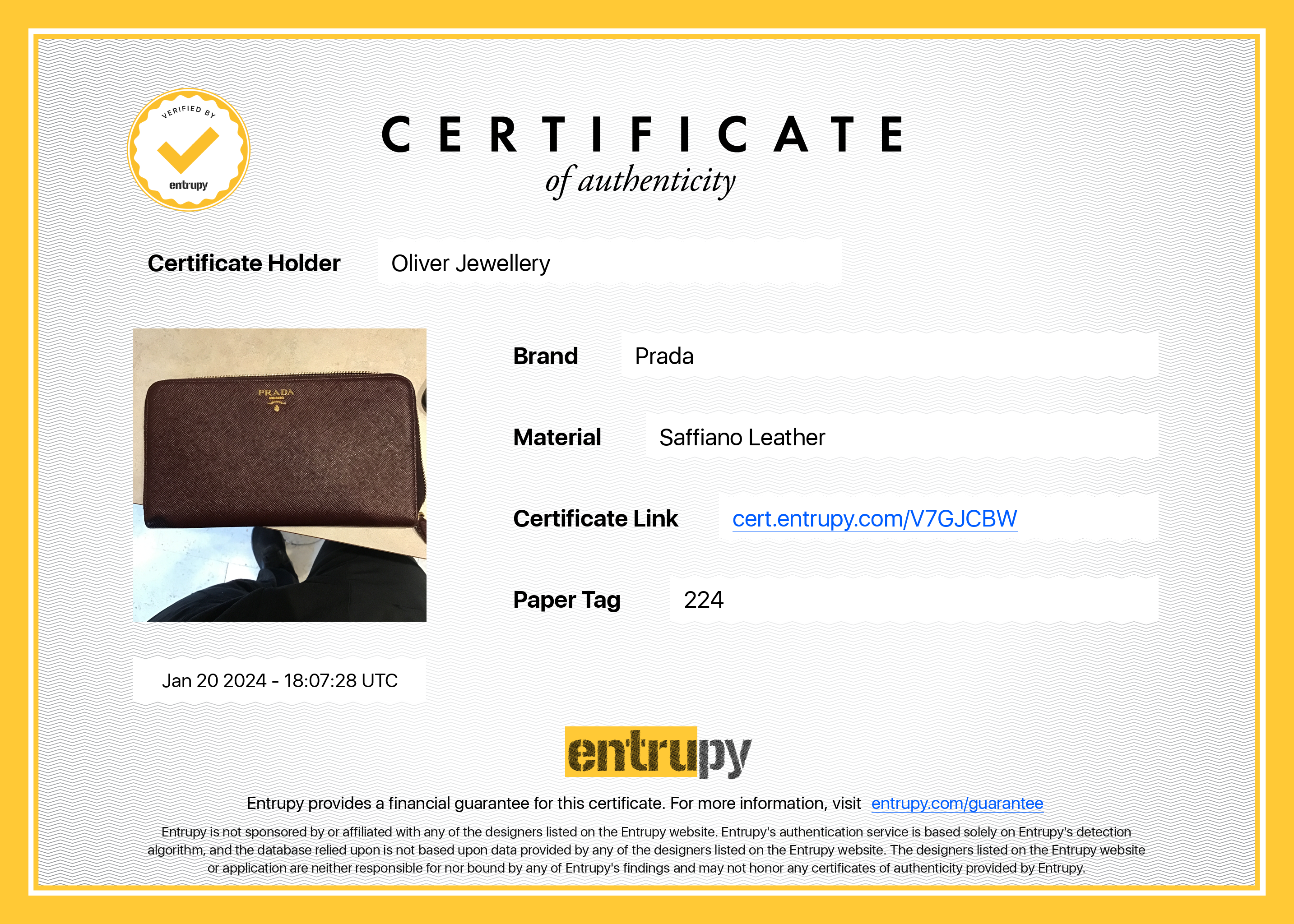 Entrupy Certificate of Authenticity