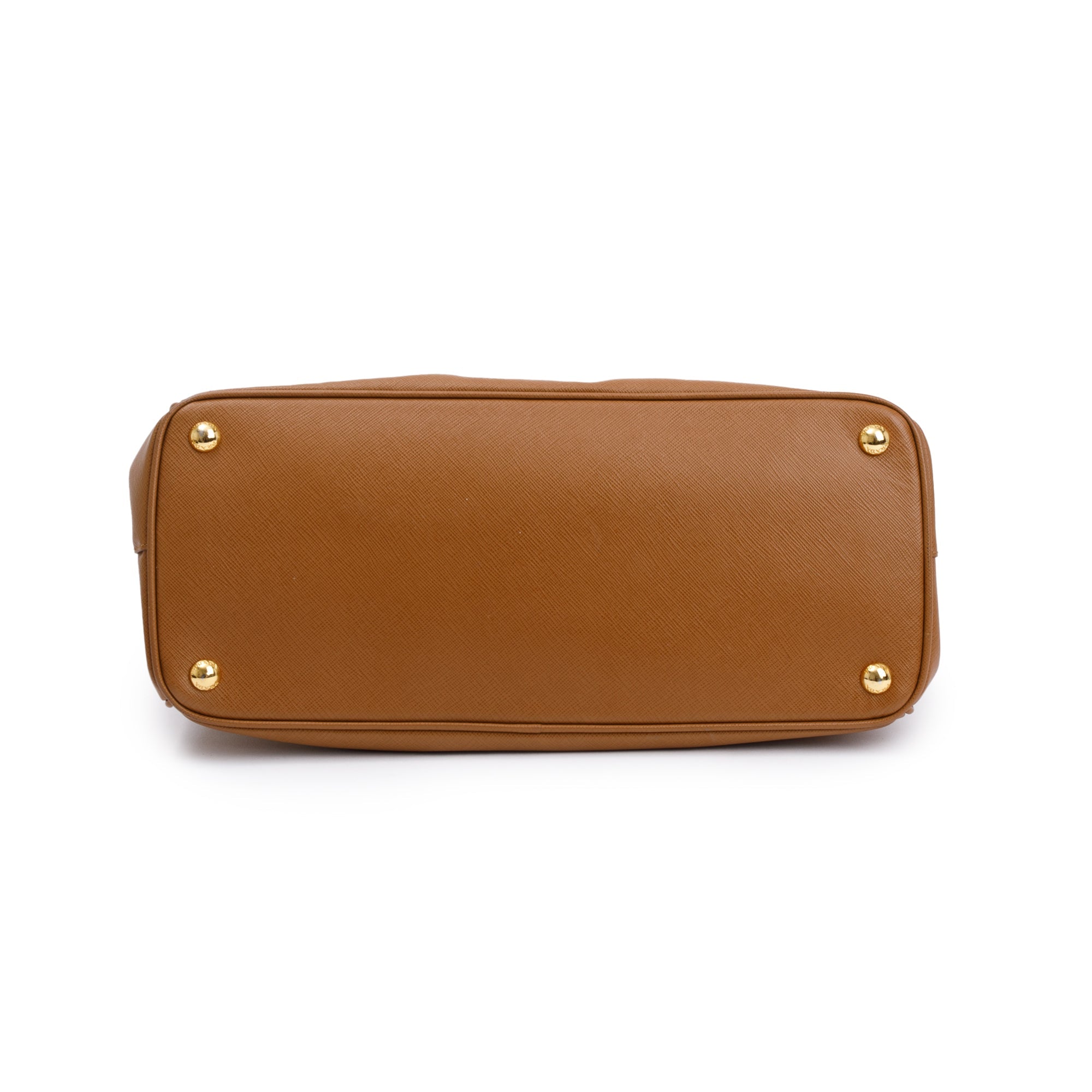 Brown Saffiano Lux Medium Double Zip Galleria Tote w/ Strap