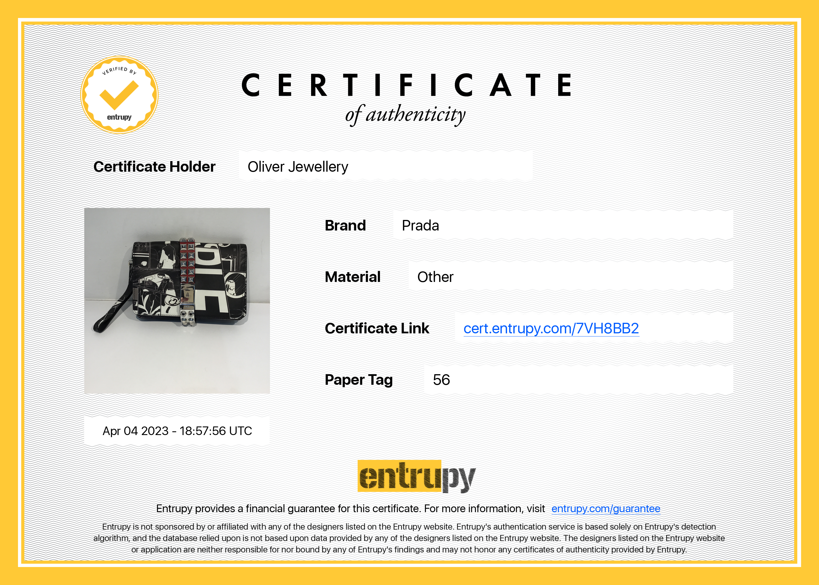 Included Items: Original Prada Authenticity Card and Entrupy Certificate of Authenticity #: 7VH8BB2