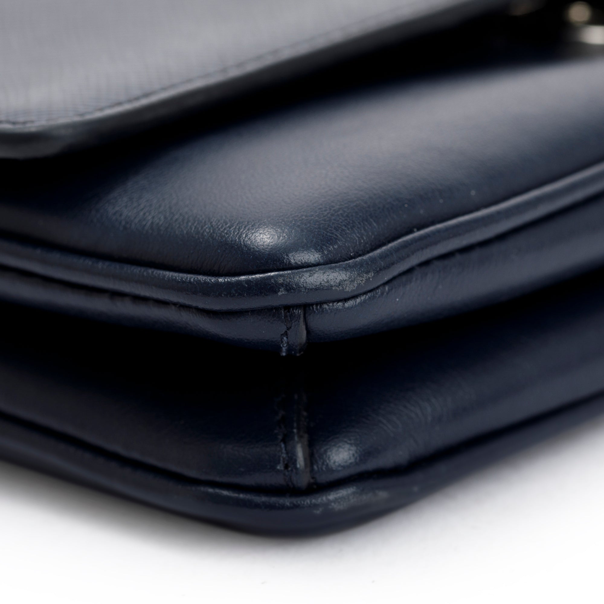 Navy Soft Calf Saffiano Leather Chain Crossbody Bag
