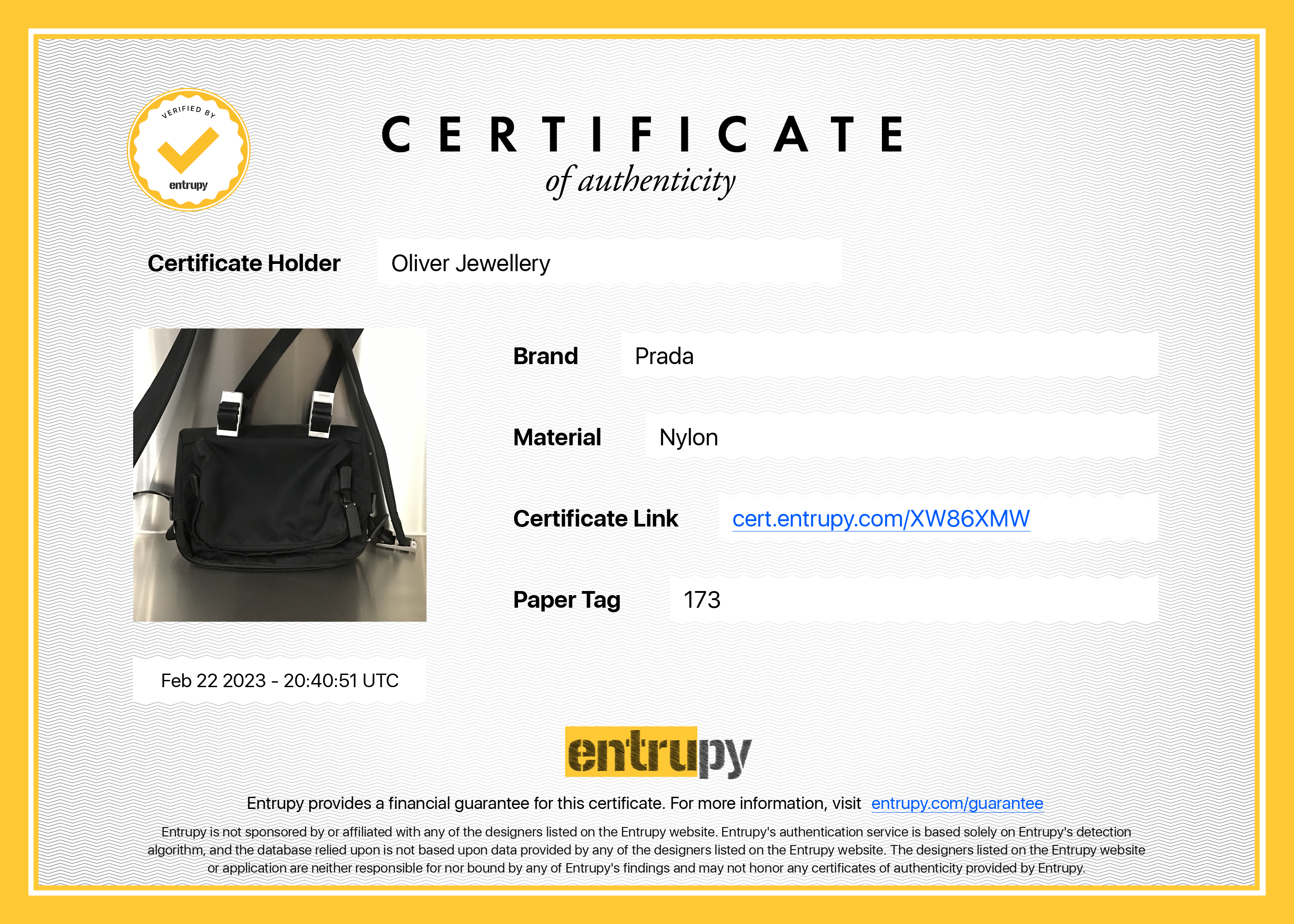 Included Item: Entrupy Certificate of Authenticity #: XW86XMW