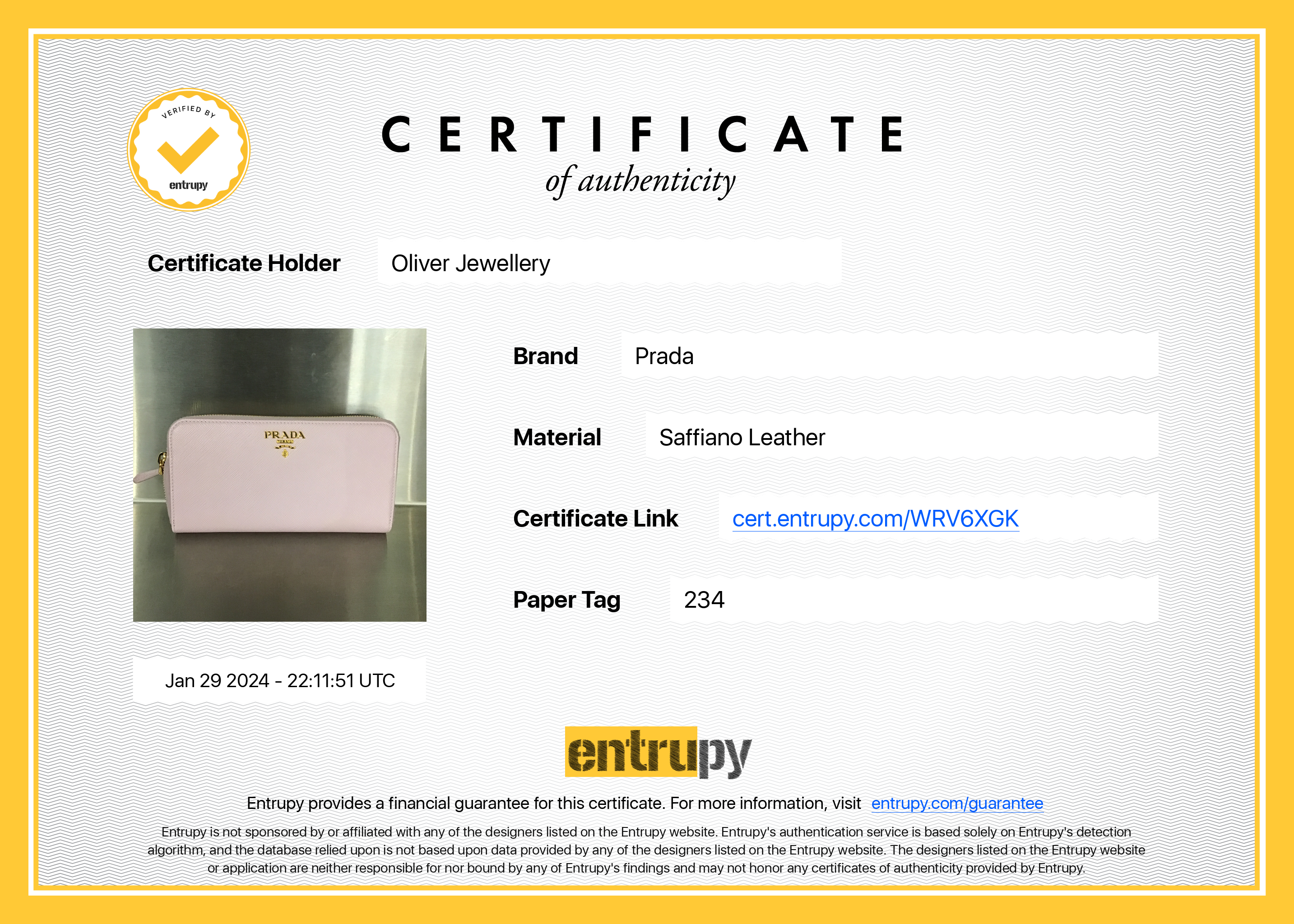 Box, Tag, Authenticity Card, Entrupy Certificate of Authenticity