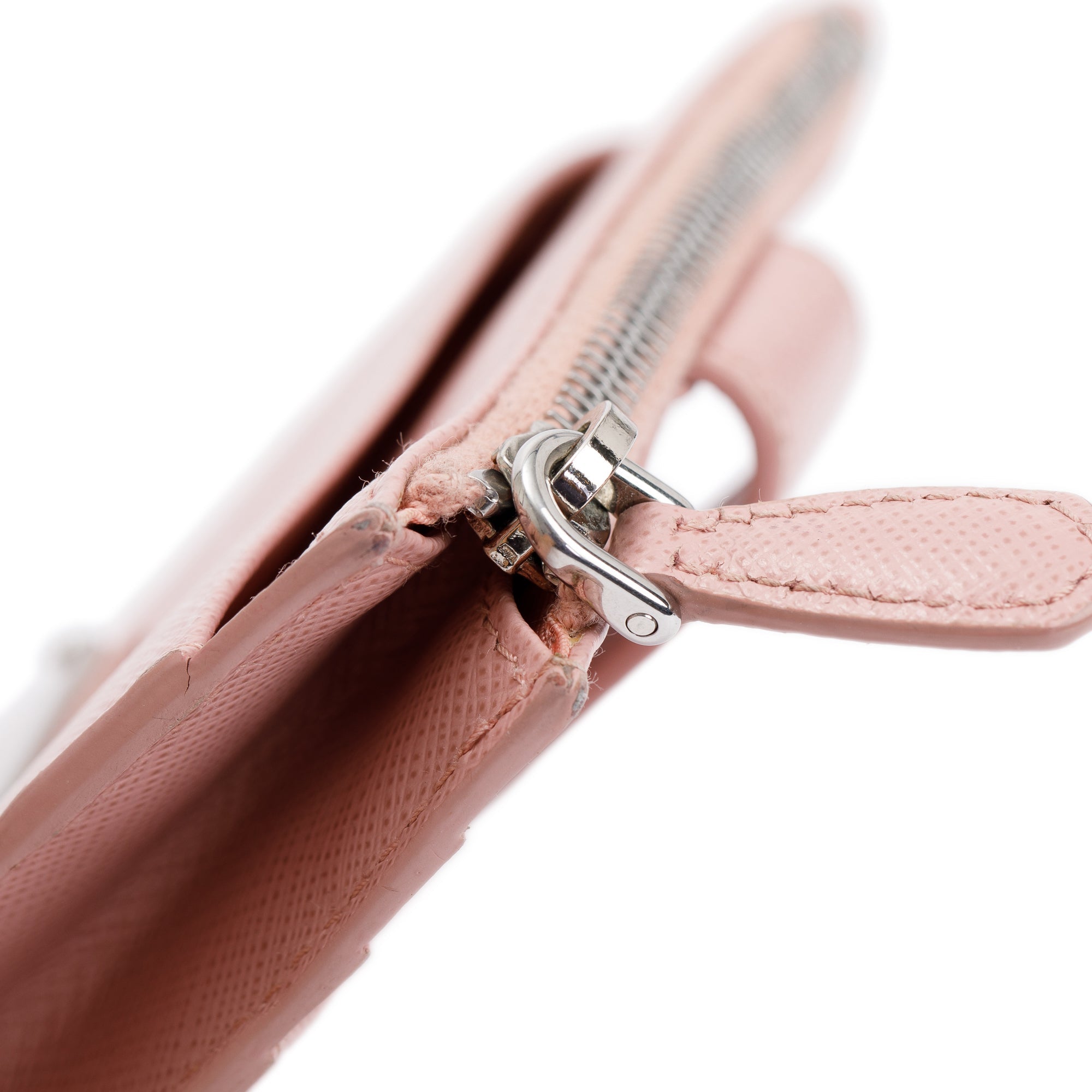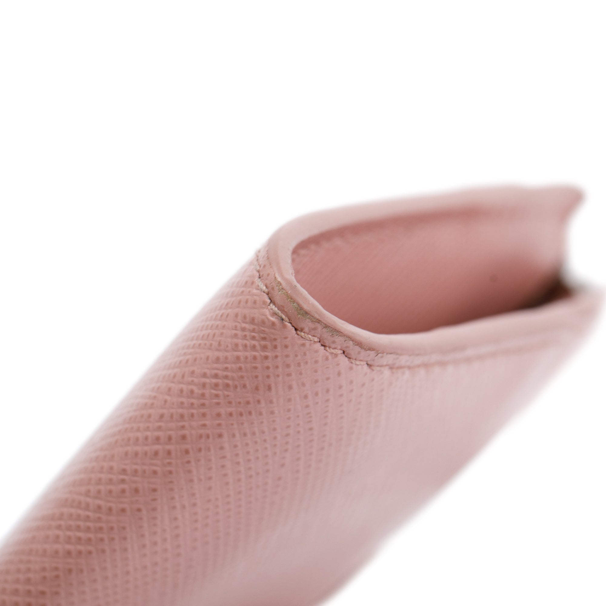 Pink Saffiano Leather Zip Card Holder w/ Box