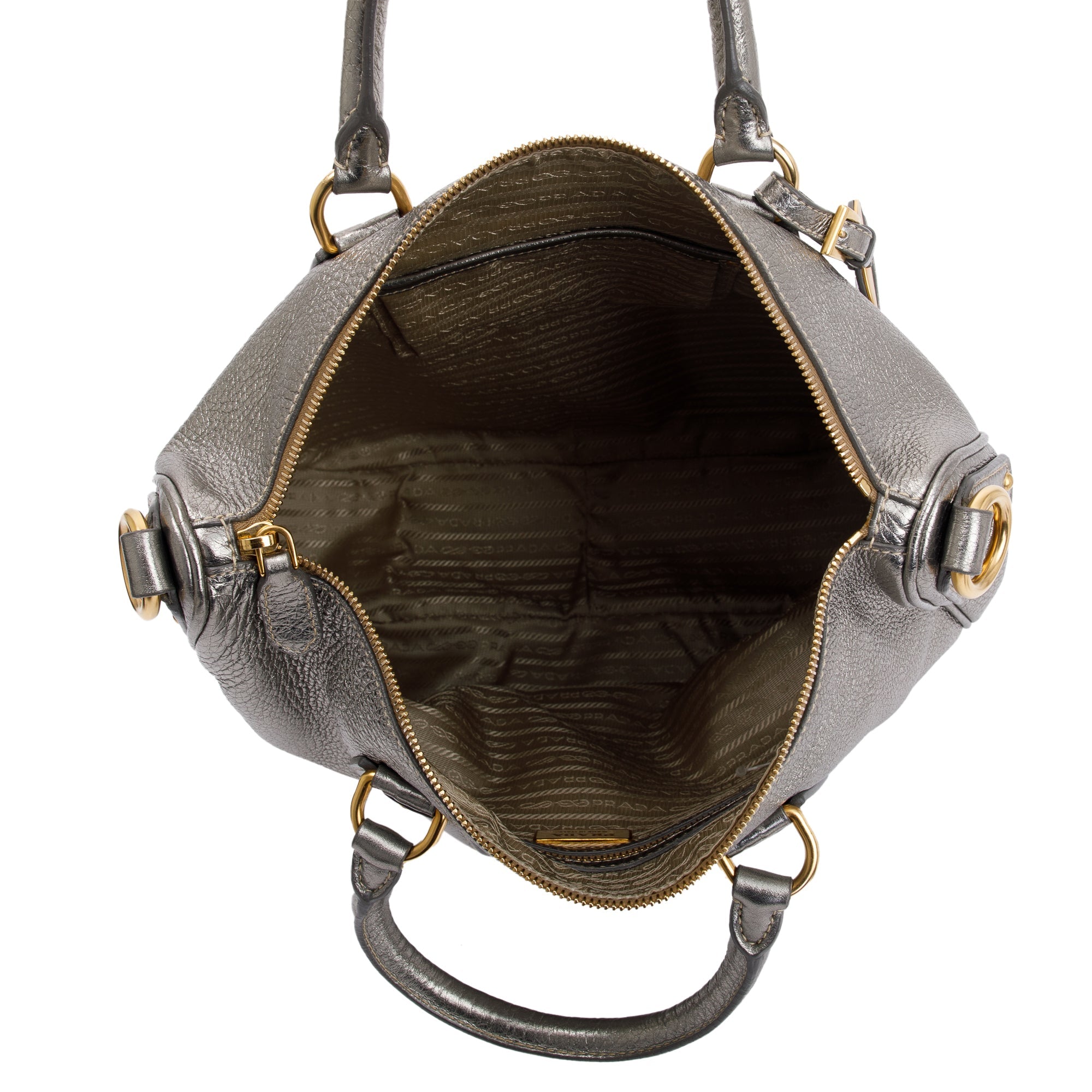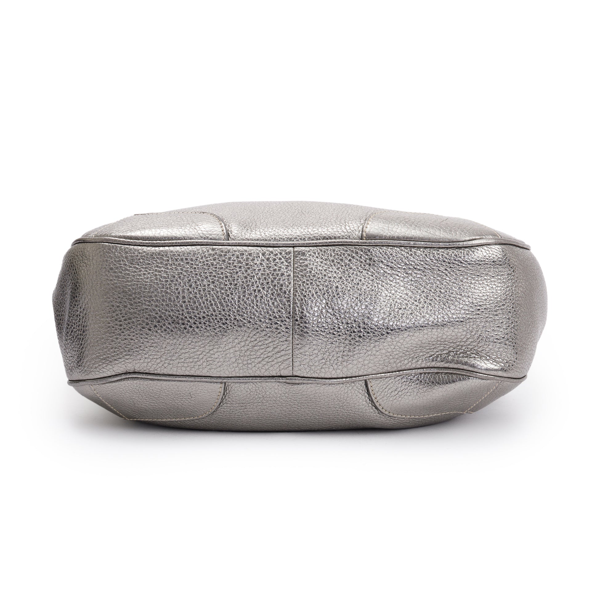 Silver Vitello Daino Leather Tote w/ Strap & Authenticity Card