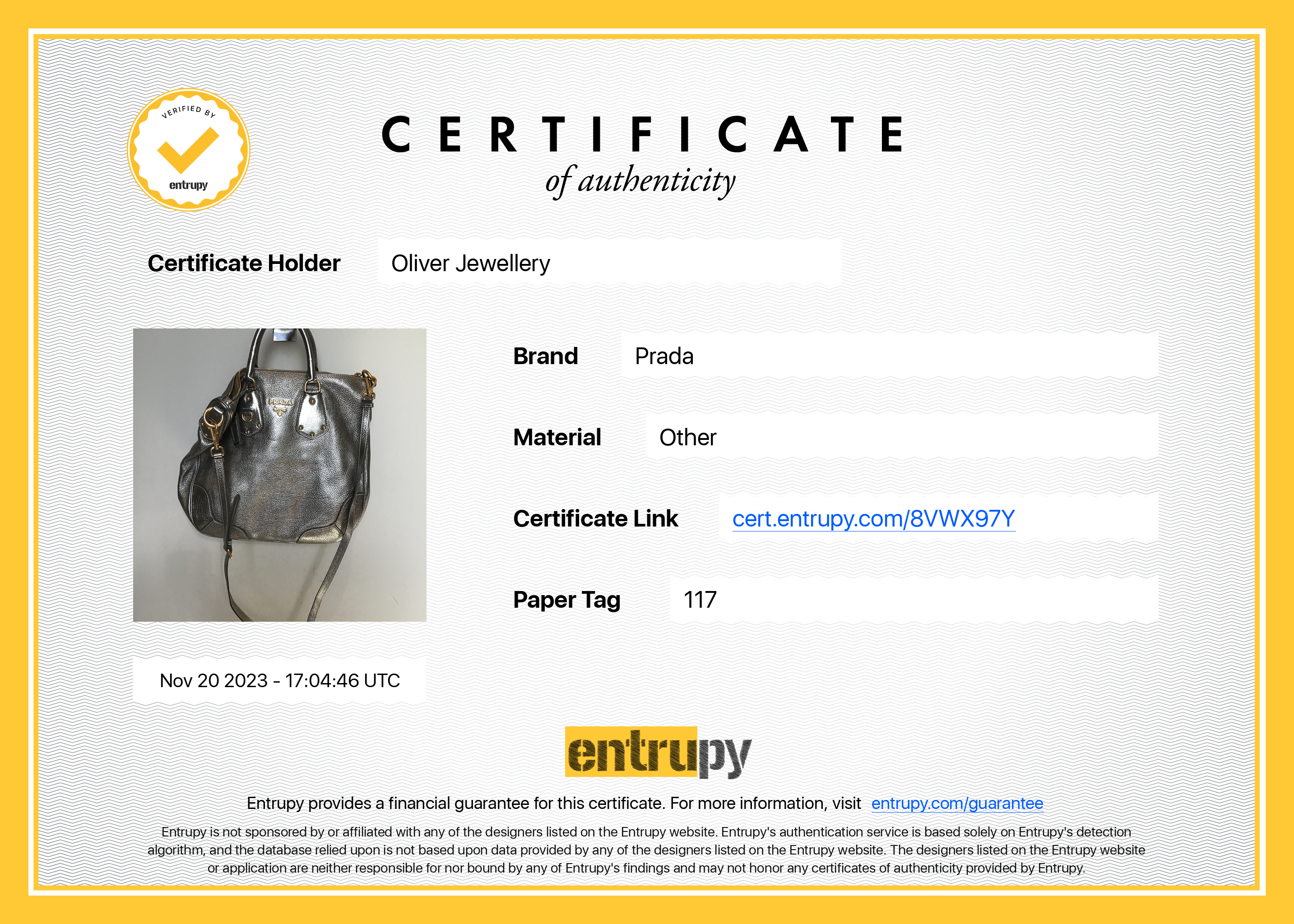 Detachable Strap, Authenticity Card, Dust Bag, ID Tag, Entrupy Certificate of Authenticity