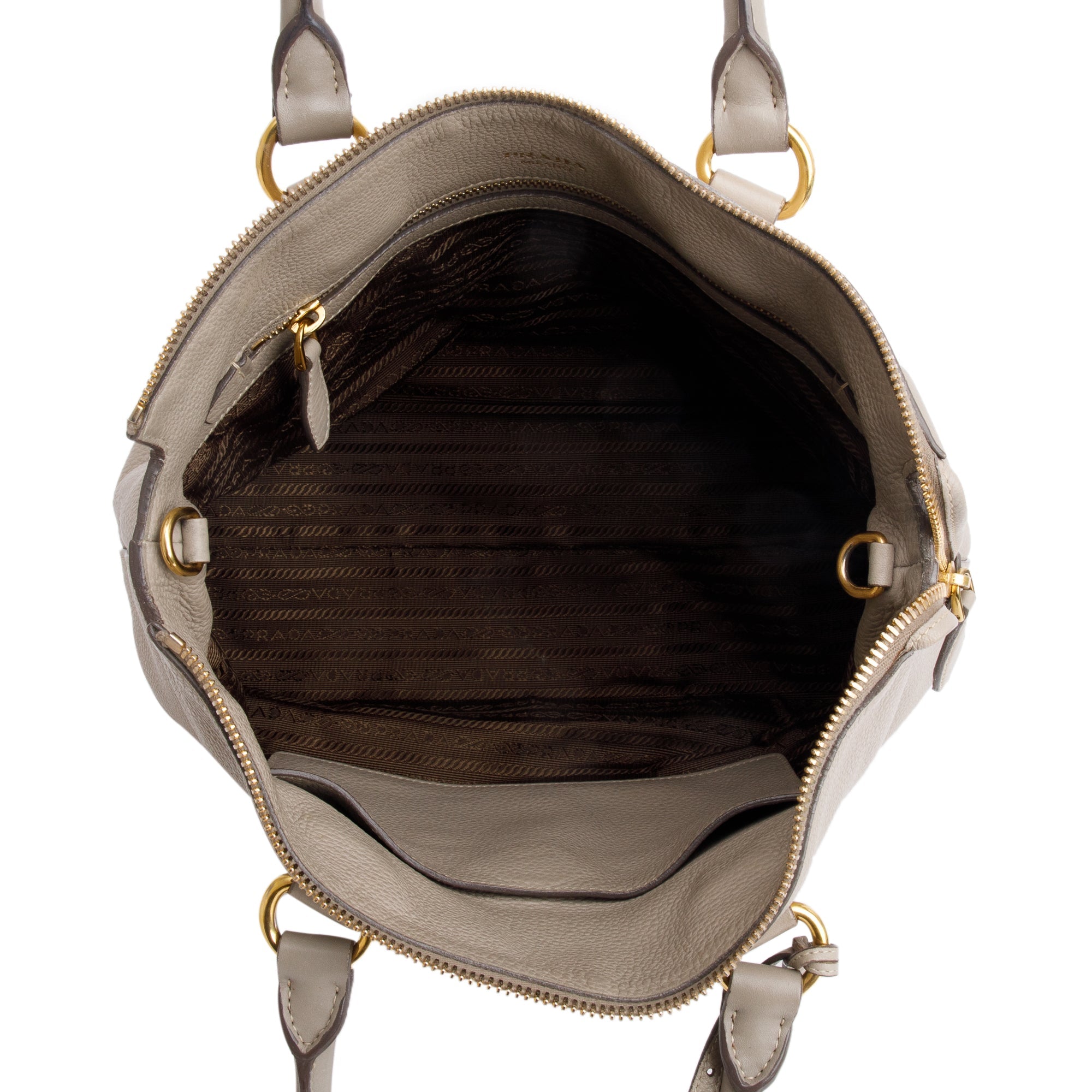 Taupe Vitello Daino Leather Pocket Zip Tote w/ Strap