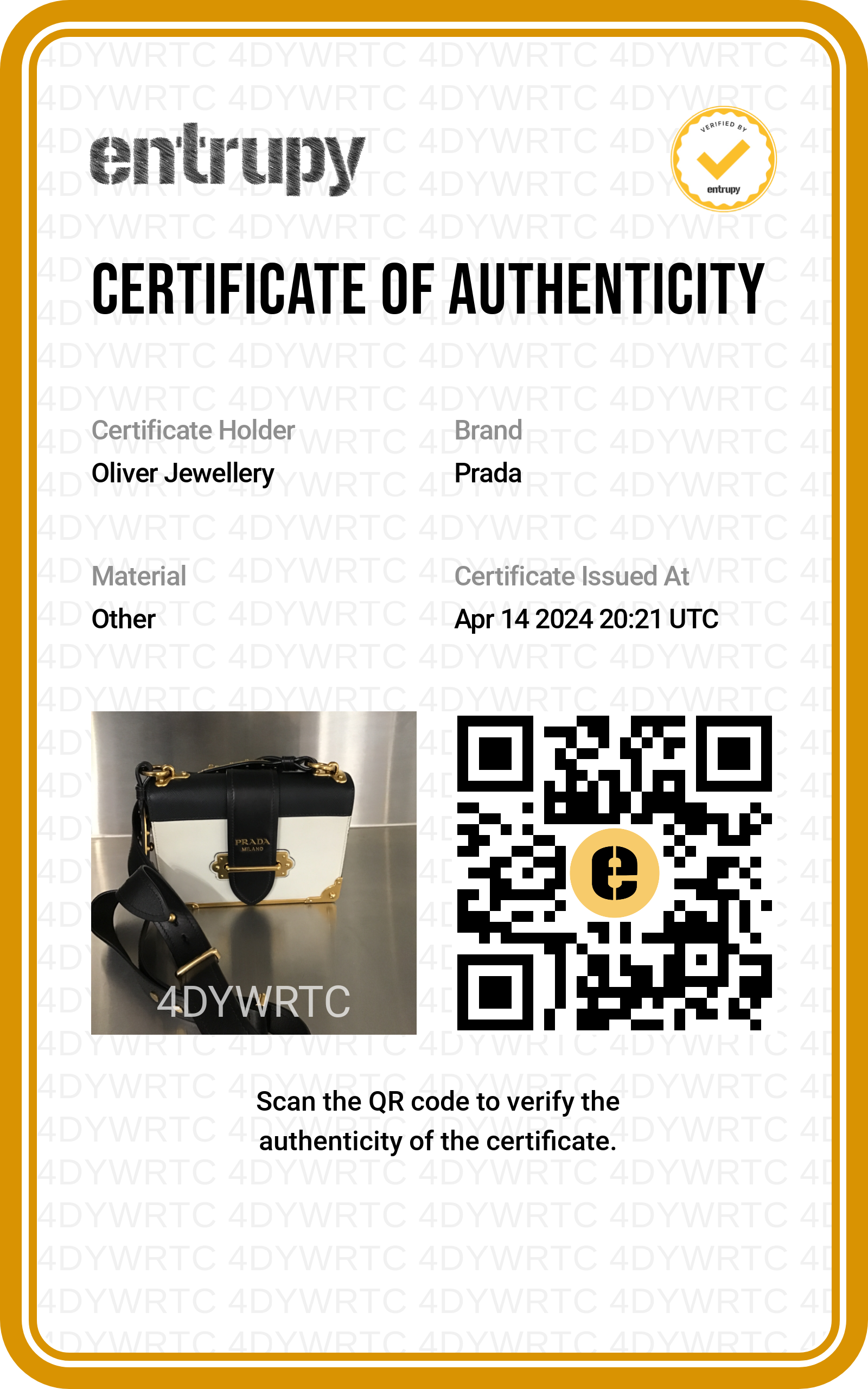 Receipt, Authenticity Card, Entrupy Certificate of Authenticity