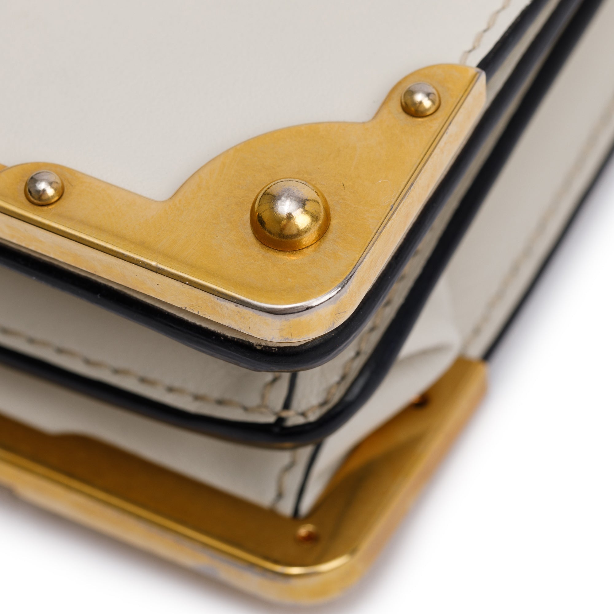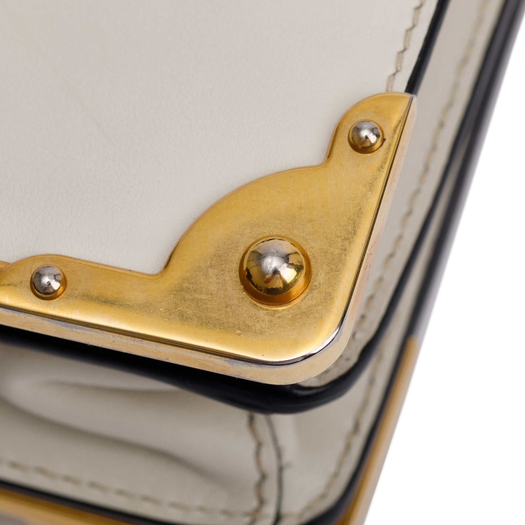 Condition: Very Good; light tarnishing at hardware; light light creasing at interior