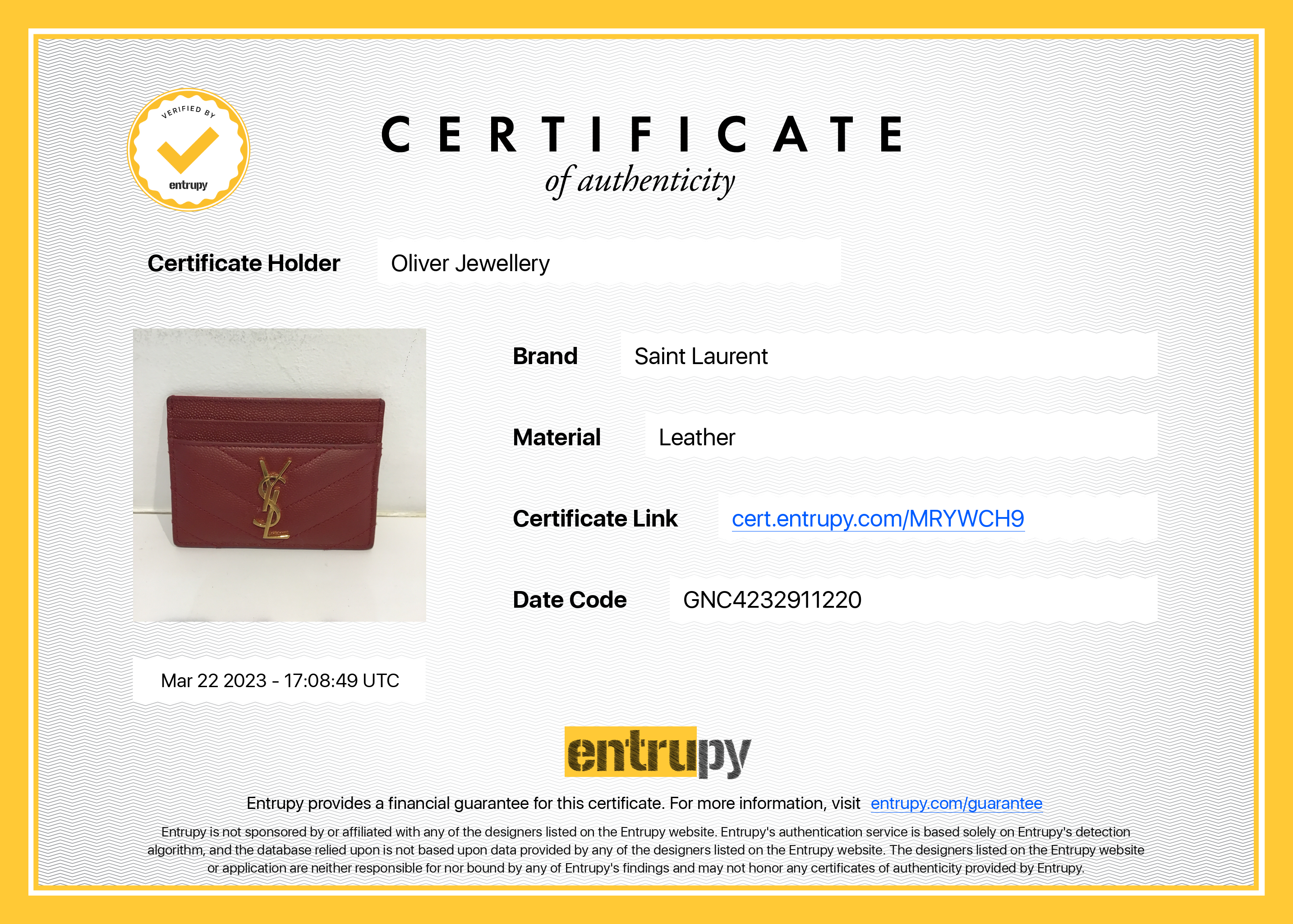 Included Items: Original Saint Laurent Box, Dust Bag, Booklet & Entrupy Certificate of Authenticity #: MRYWCH9