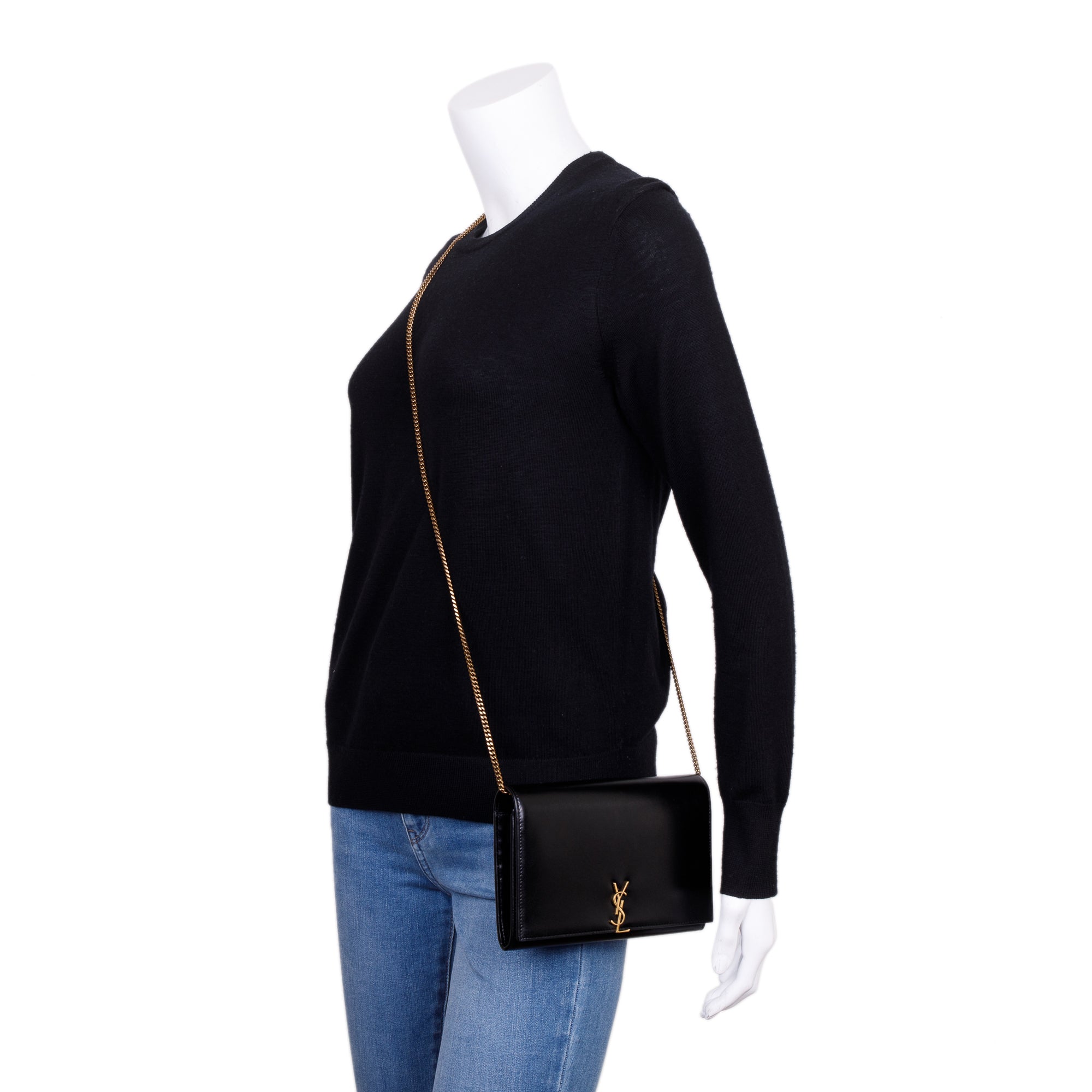 2021 Black Calfksin Leather Monogram Chain Wallet w/ Box