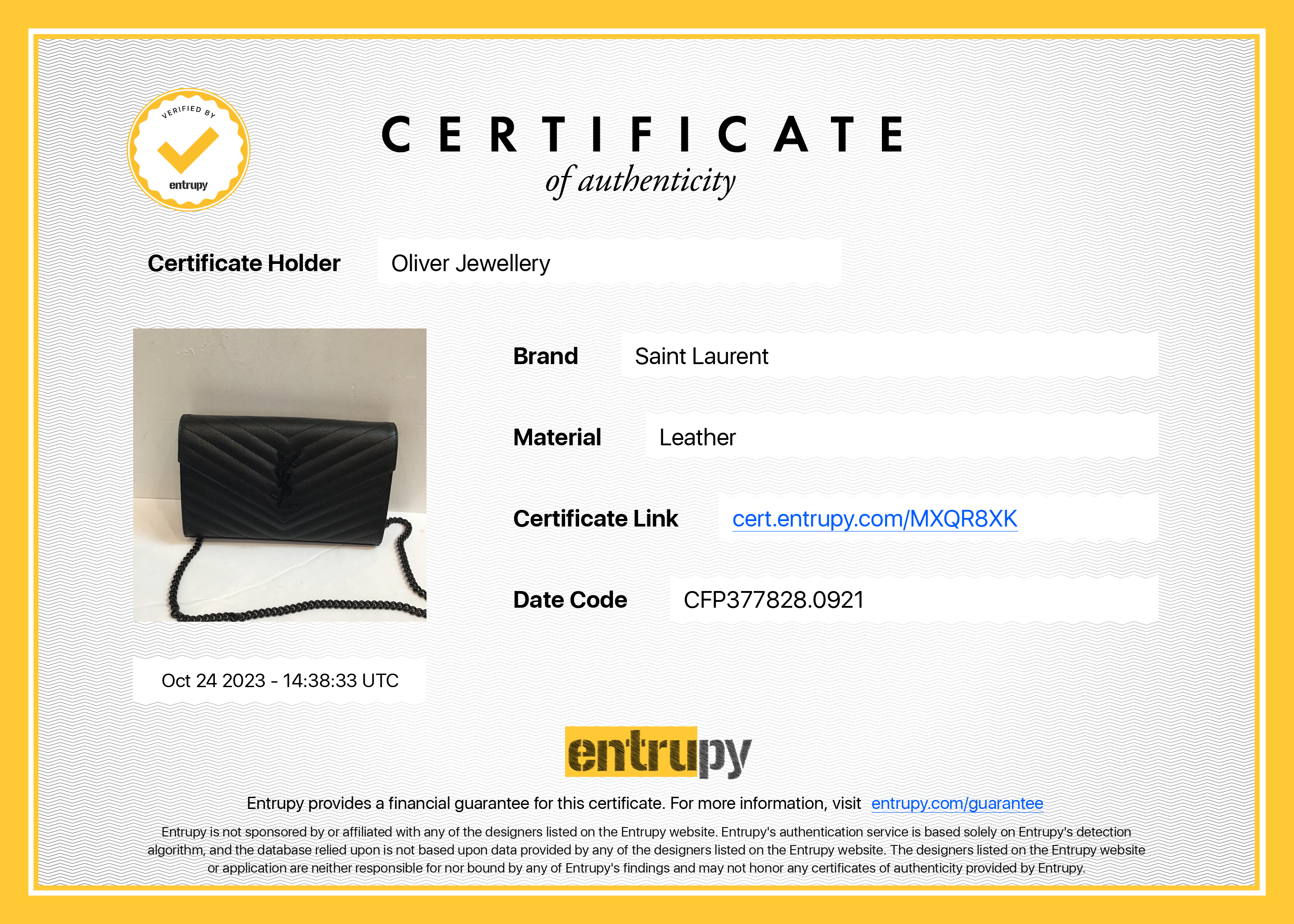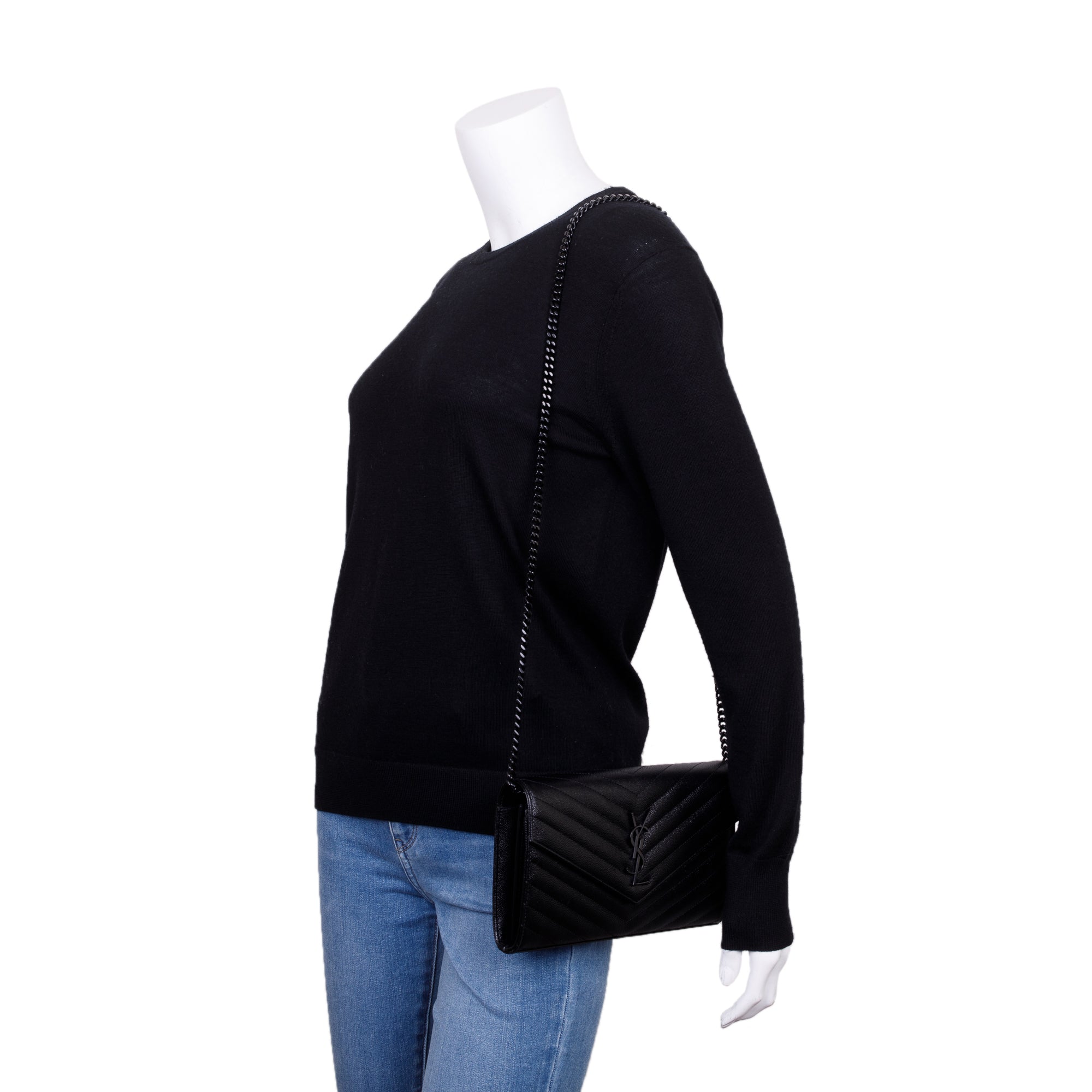 2021 Black Grained de Poudre Cassandre Matelasse Chain Wallet w/ Box