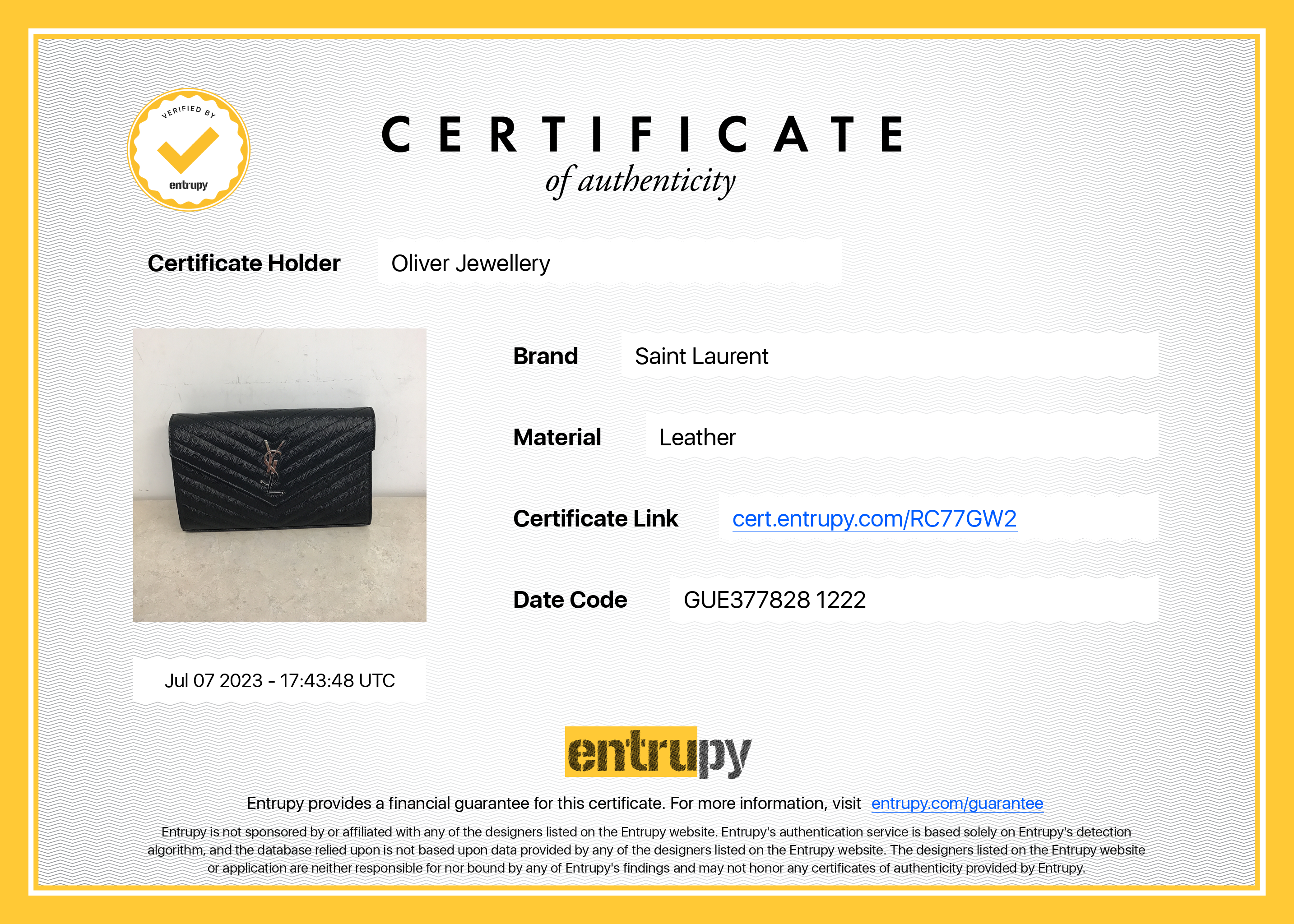 Included Items: Original Saint Laurent Box, Dust Bag, Booklet, Gift Receipt & Entrupy Certificate of Authenticity #: RC77GW2