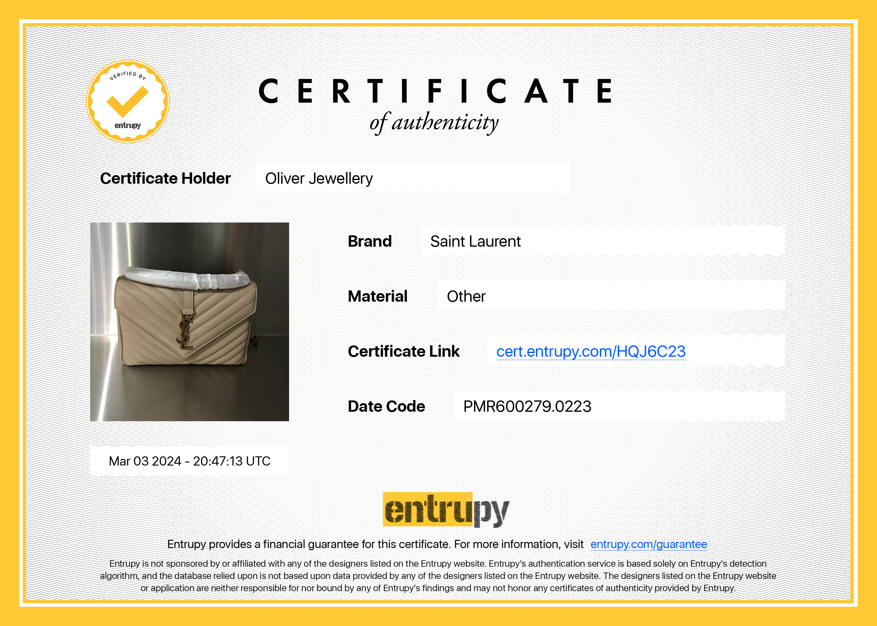 Box, Dust Bag, Entrupy Certificate of Authenticity
