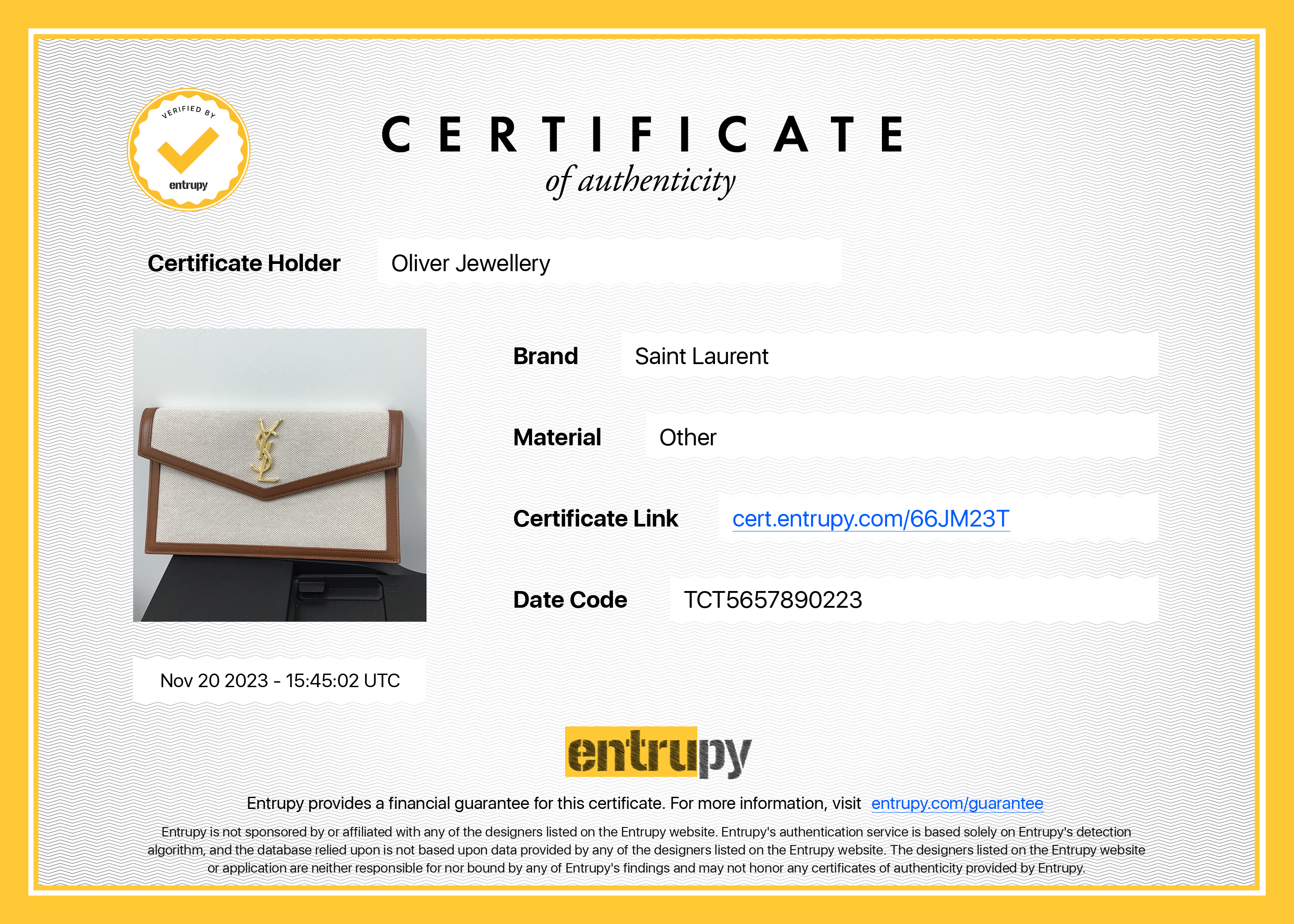 Box, Dust Bag, Booklet, Tag, Entrup Certificate of Authenticity