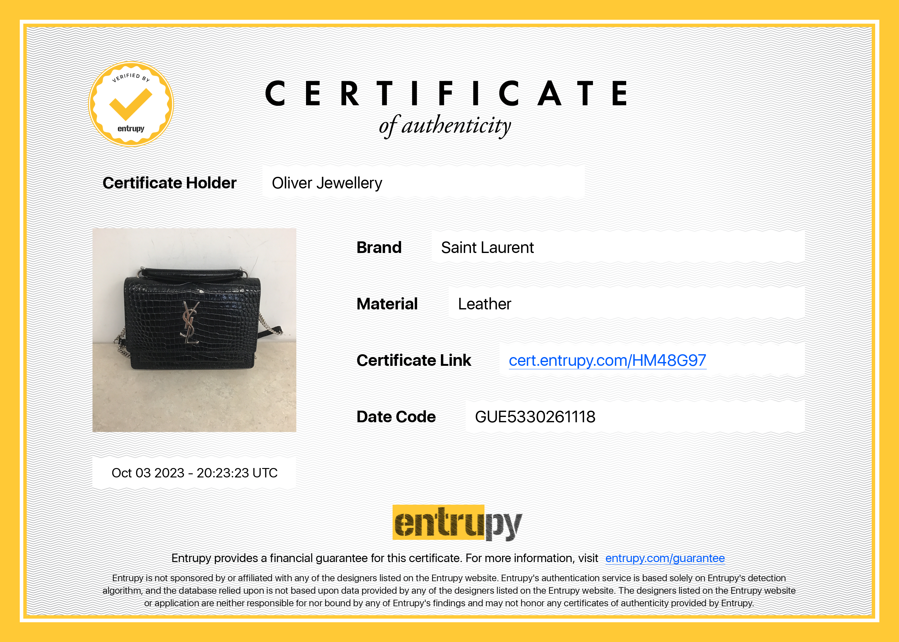 Dust Bag, Detachable Strap, Entrupy Certificate of Authenticity