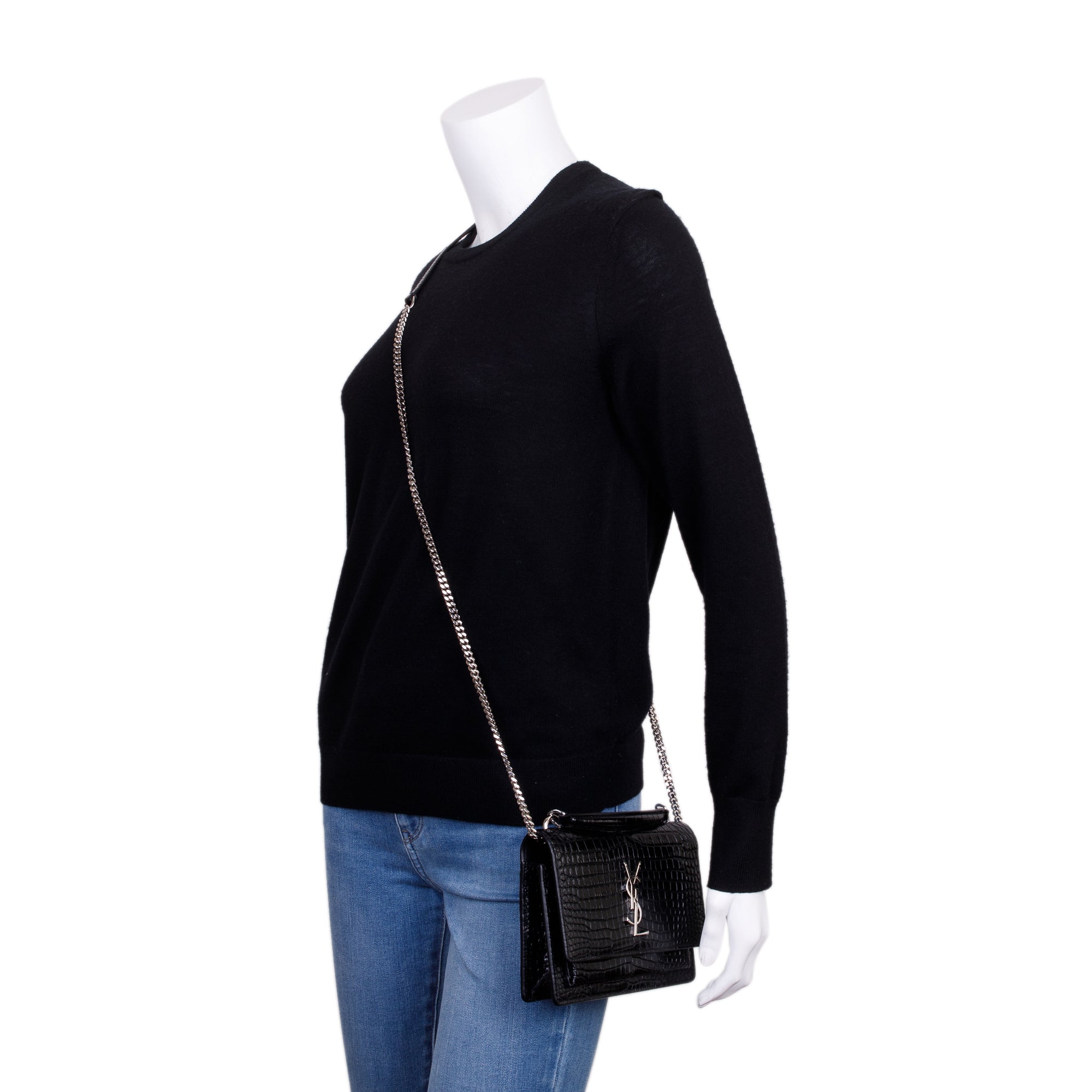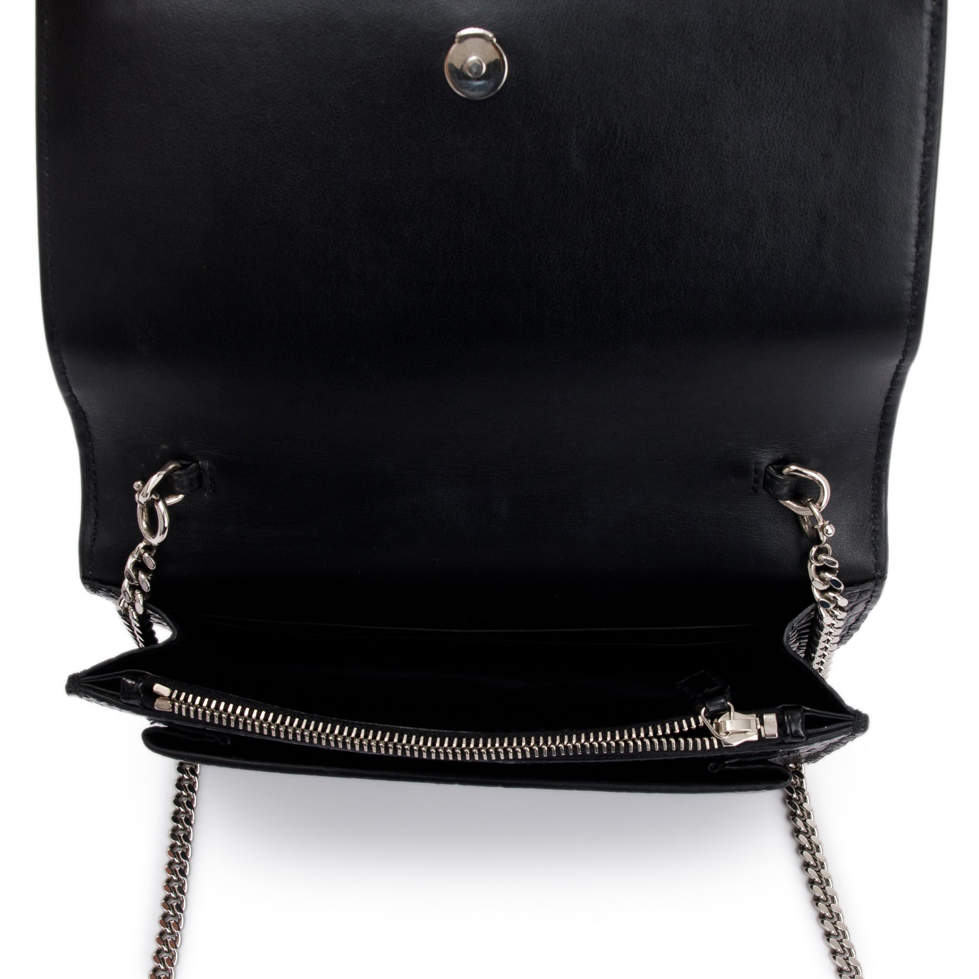 Black Crocodile Embossed Small Sunset Chain Wallet w/ Strap