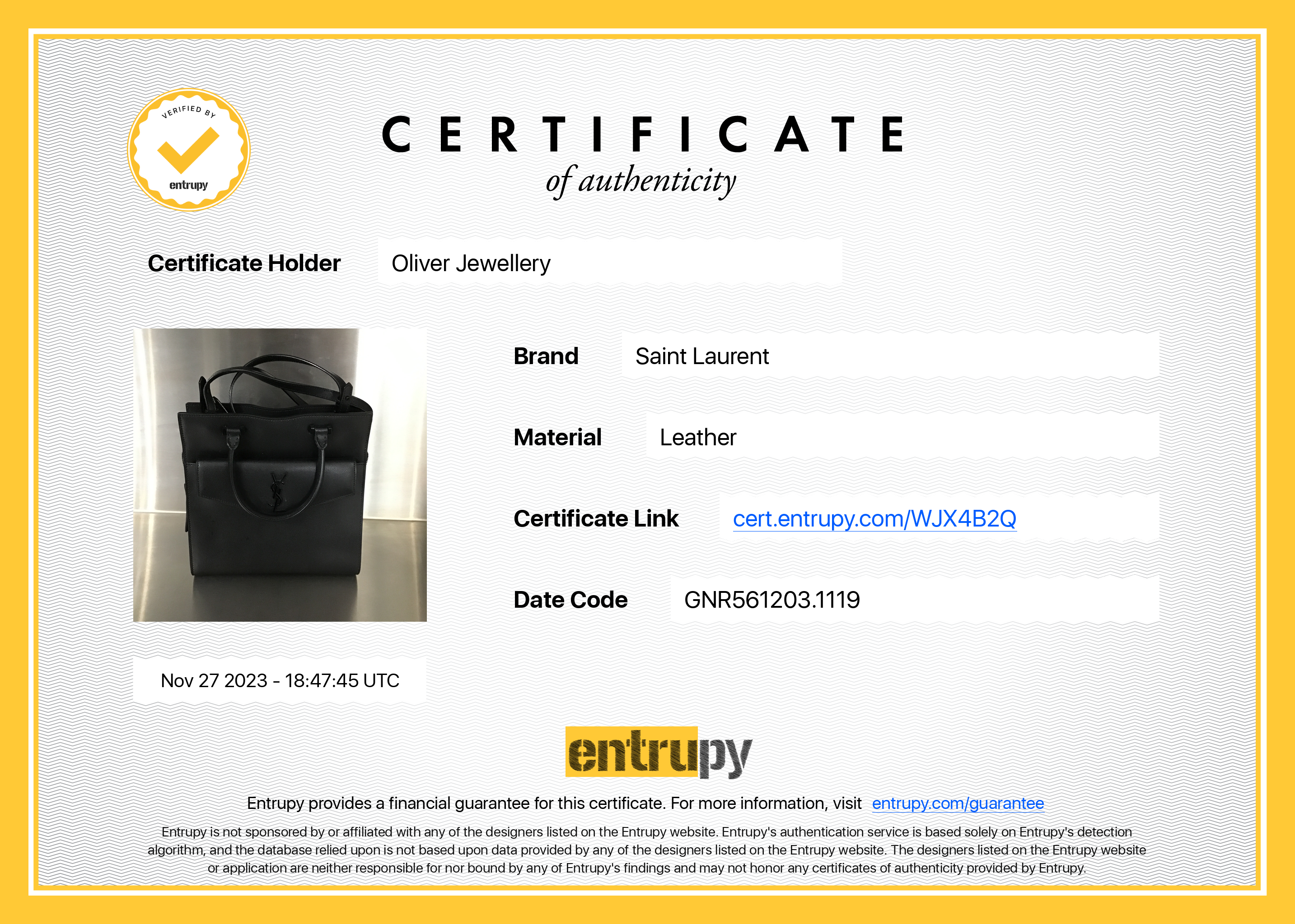 Dust Bag, Insert, Receipt, Entrup Certificate of Authenticity