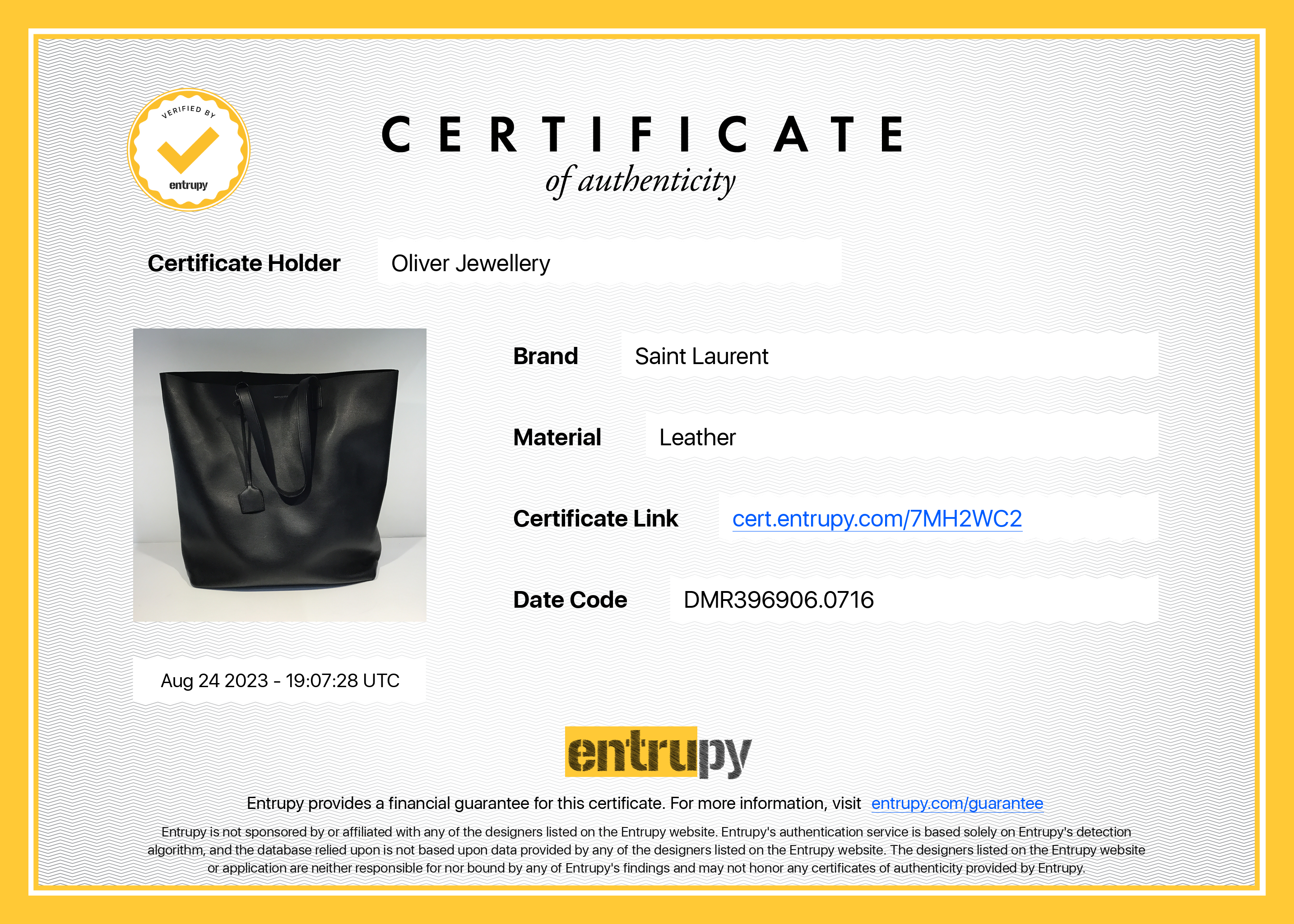 Dust Bag, Matching Zip Pouch, Clochette, Entrupy Certificate of Authenticity