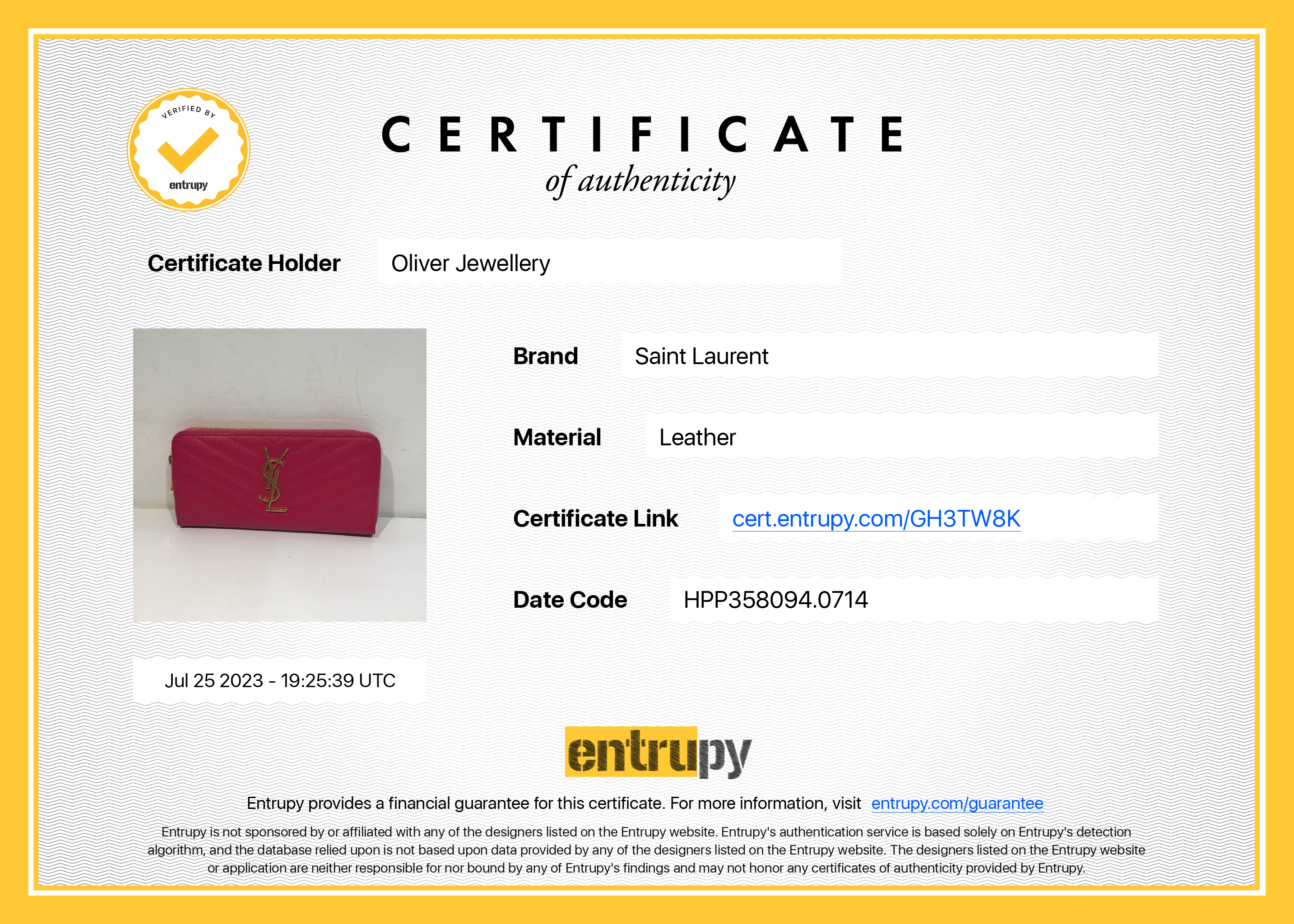 Included Items: Original Saint Laurent Dust Bag, Entrupy Certificate of Authenticity #: GH3TW8K
