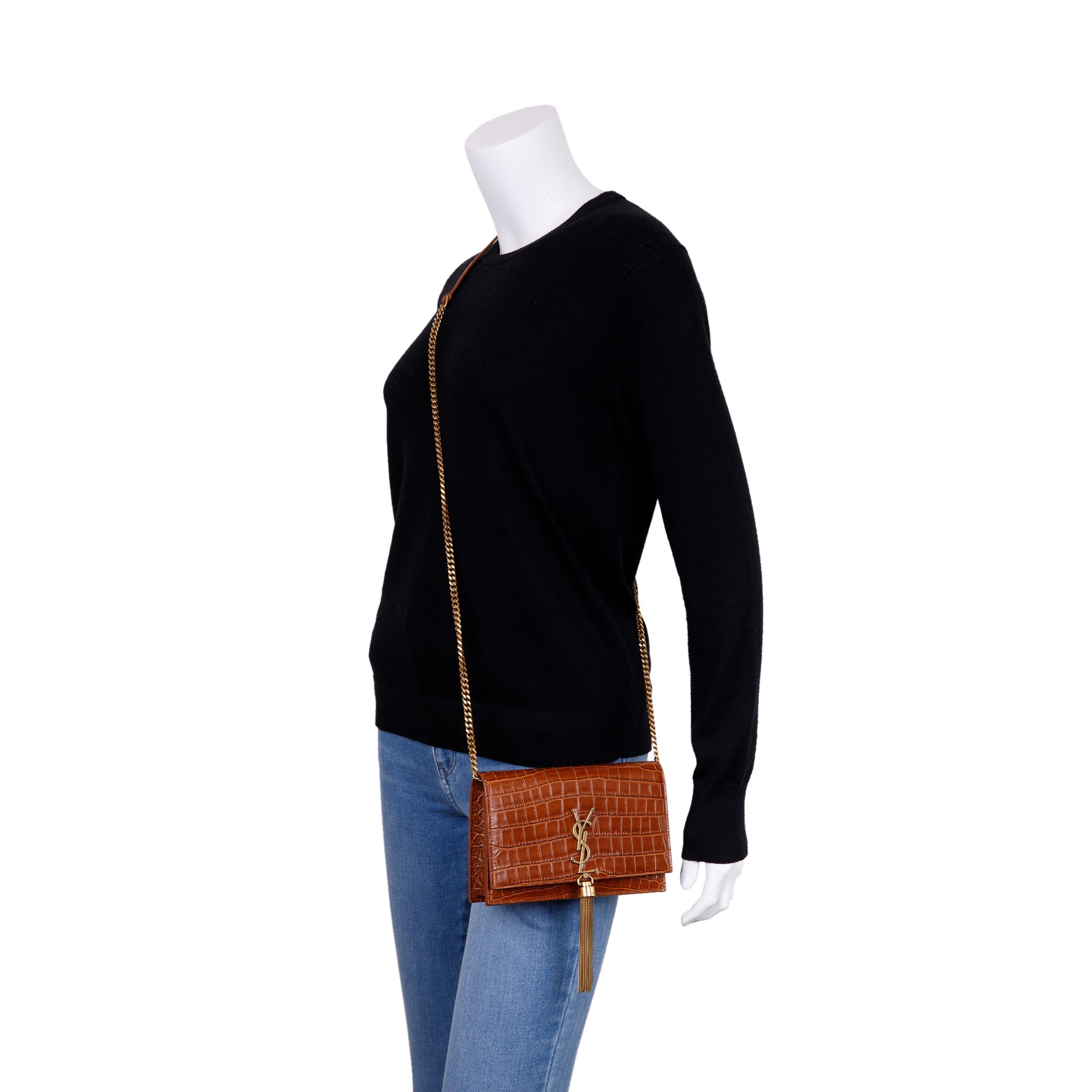 Saint Laurent Croc Embossed Kate Tassel Wallet on Chain