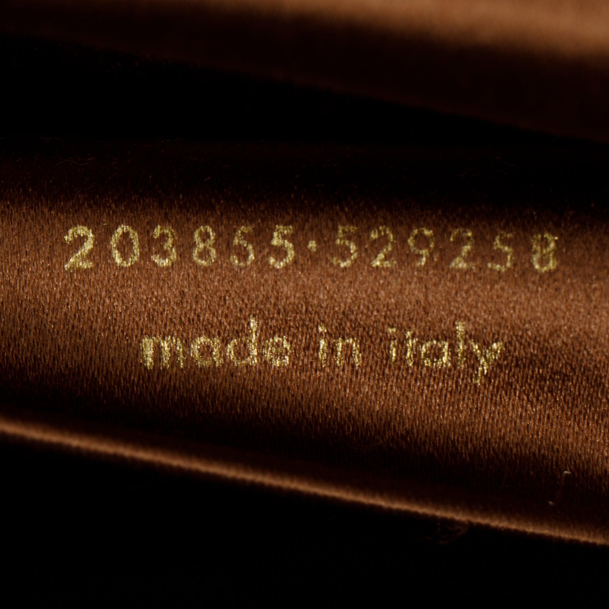 Condition: Very Good; slight scratches and tarnishing at hardware; slight scratches and wear at interior