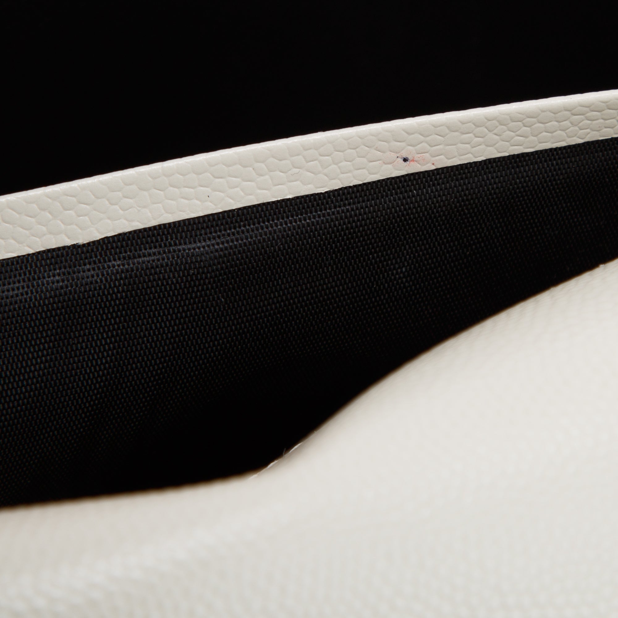 Condition: Very Good; light surface scratches and tarnishing at hardware; minor marks at exterior leather; slight mark at interior