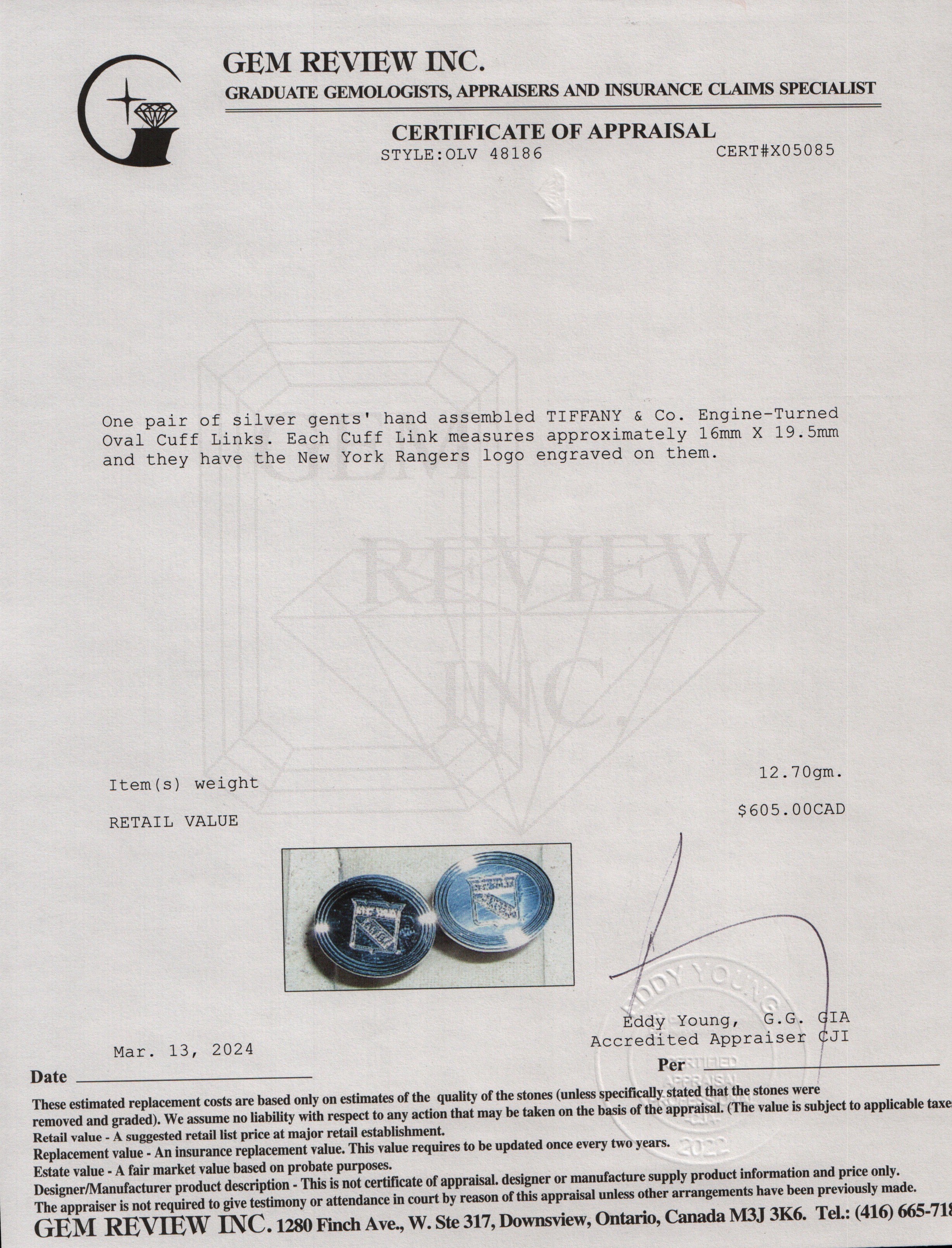 Sterling Silver Engine-Turned 'New York Rangers' Oval Cuff Links
