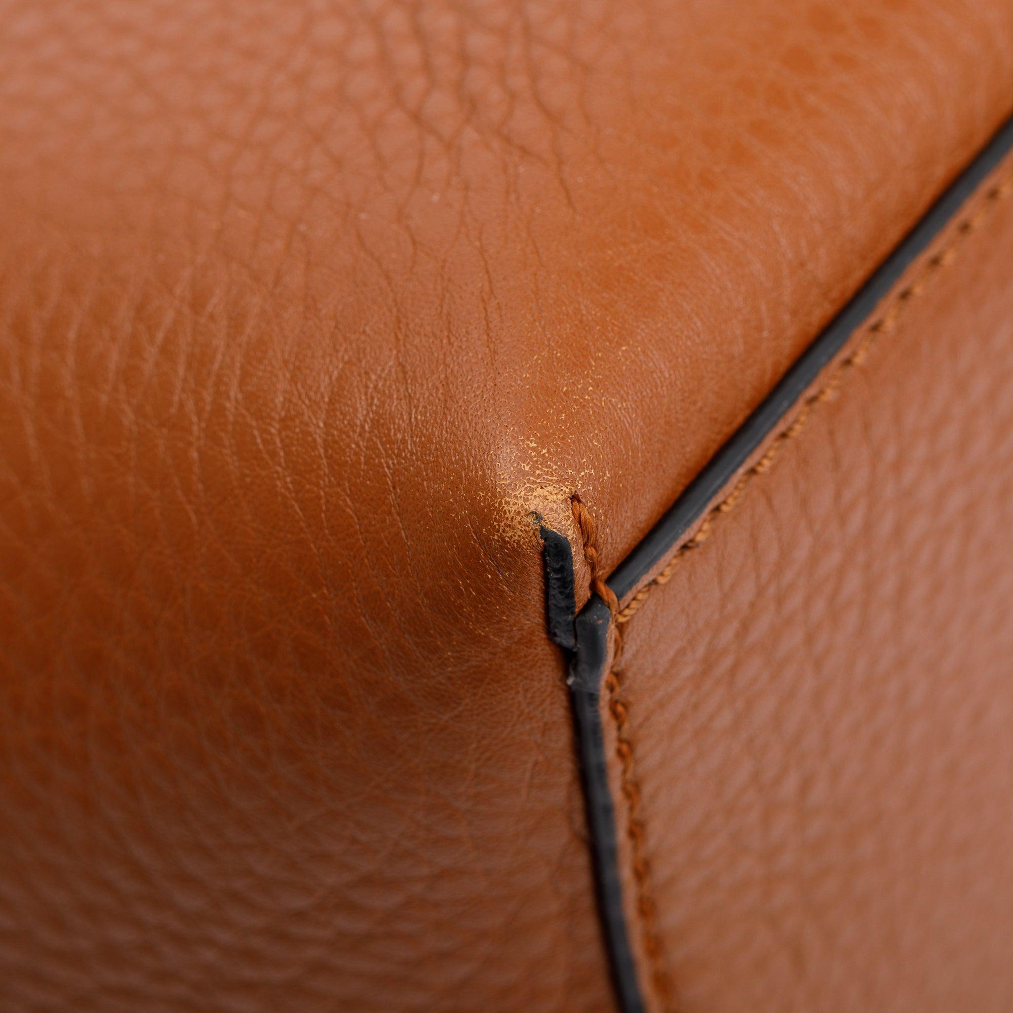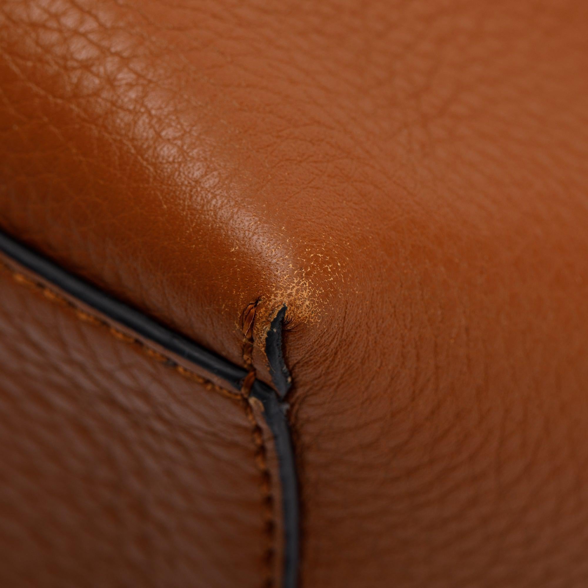 Condition: Very Good; light scratches at exterior leather; slight scuffing at exterior bottom corners; slight wear and pen marks at interior