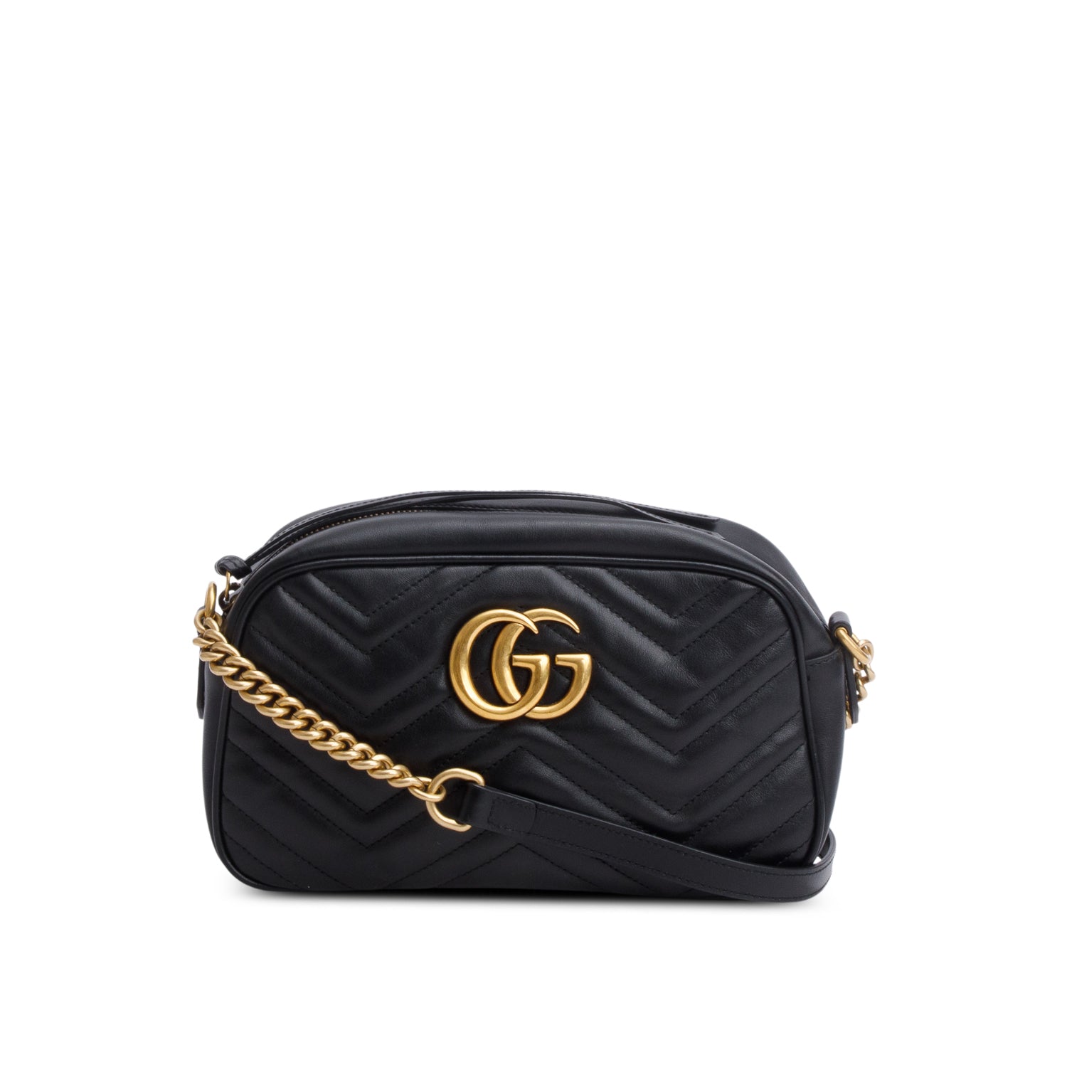 Black Calfskin Web Trapuntata Small GG Shoulder Bag
