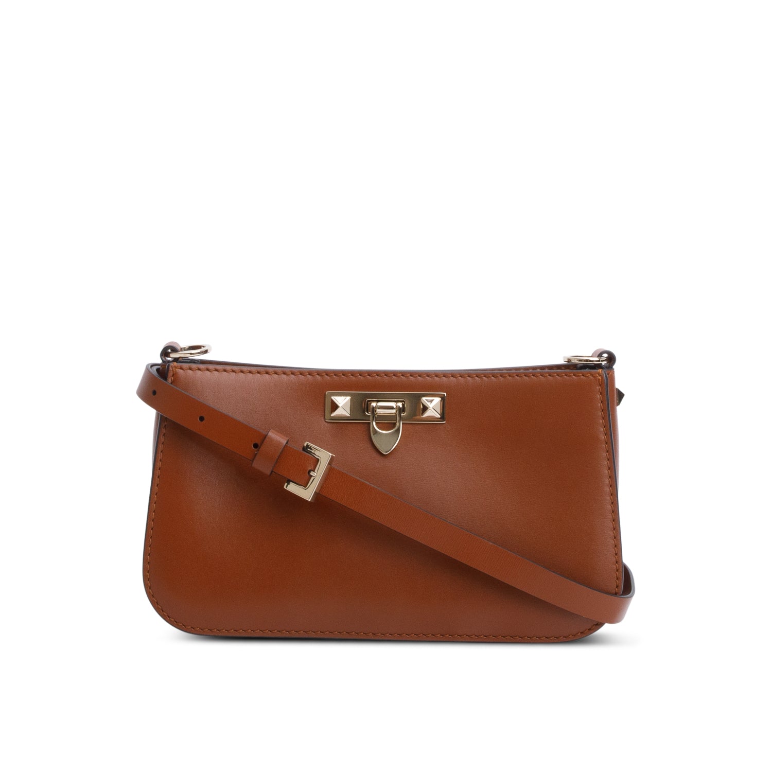 Brown Calfskin Rockstud Fierce Small Shoulder Bag