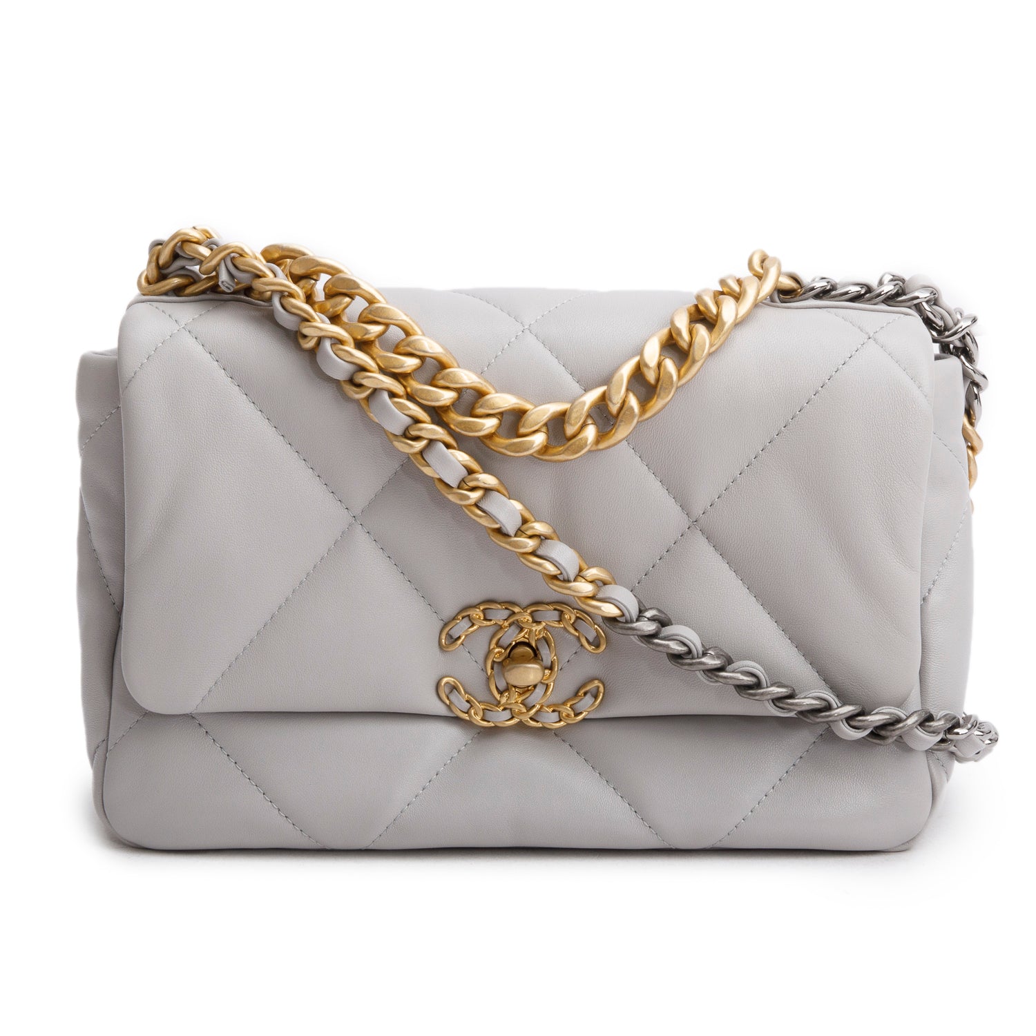 Grey Lambskin Leather Medium 19 Flap Bag w/ Box
