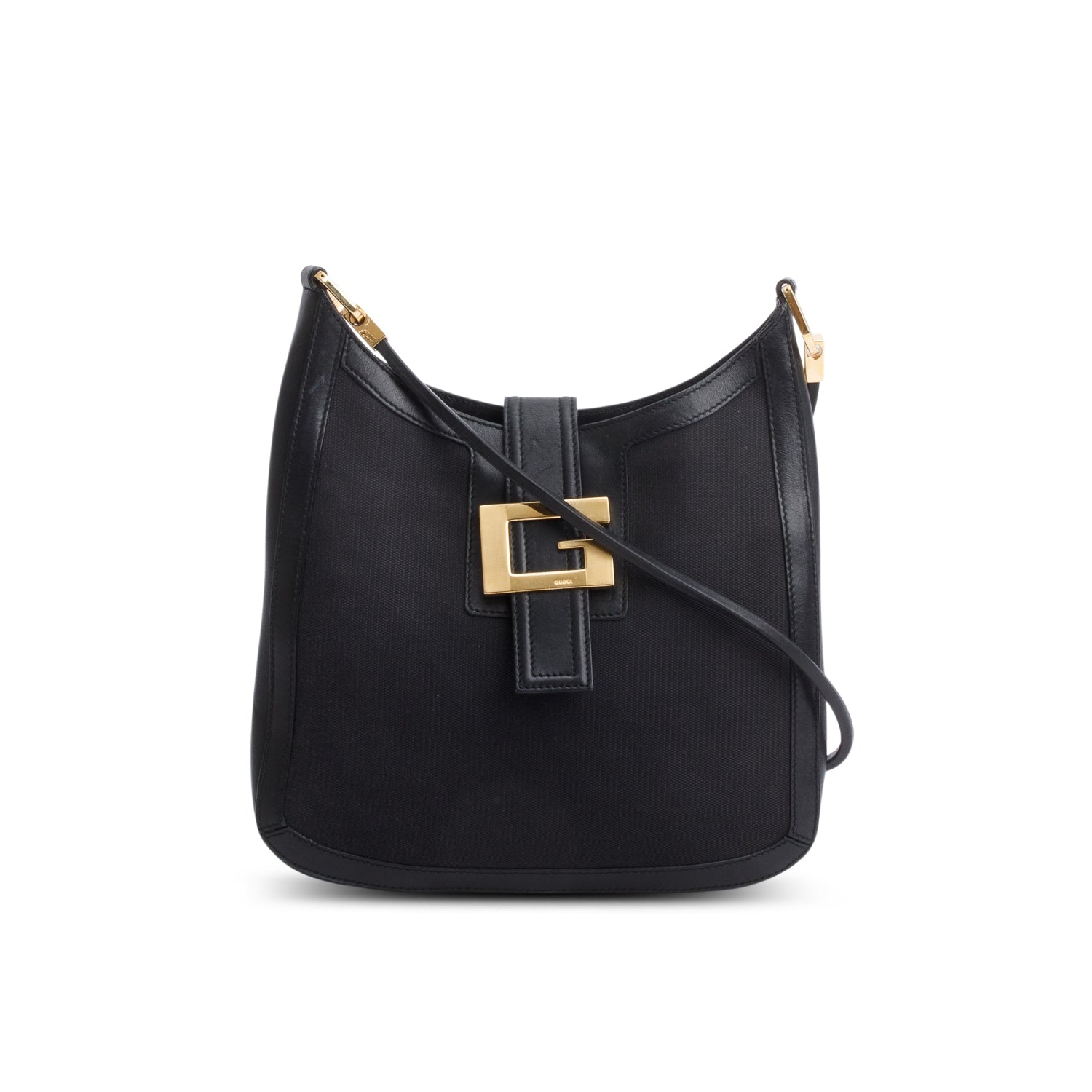 Vintage Black Canvas Leather G Buckle Shoulder Bag